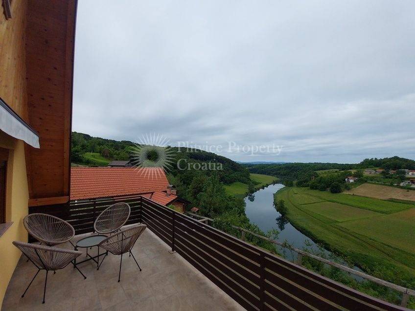 The direct connection to the Korana River and proximity to the regions scenic landscape make this property a standout option for those seeking a lifestyle immersed in nature without sacrificing comfort.