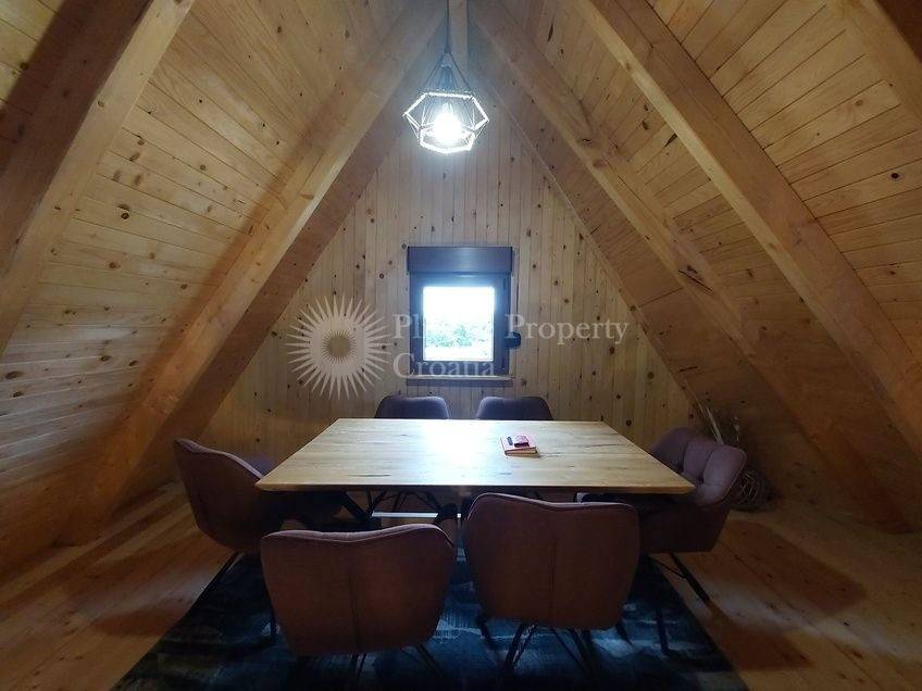 This attractive holiday home, built in 2024, offers a modern retreat in the heart of nature with an exceptional view of the Korana River. Designed with comfort and style in mind, the interior blends modern finishes with warm wooden details, creating a cozy and inviting atmosphere.