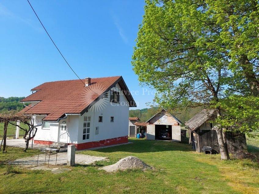 Escape to the tranquil countryside of Ru��evica, near Cetingrad, with this charming family or holiday house nestled along a quiet asphalt road. Embraced by the beauty of nature, this rural retreat offers a serene escape from the hustle and bustle of city life.