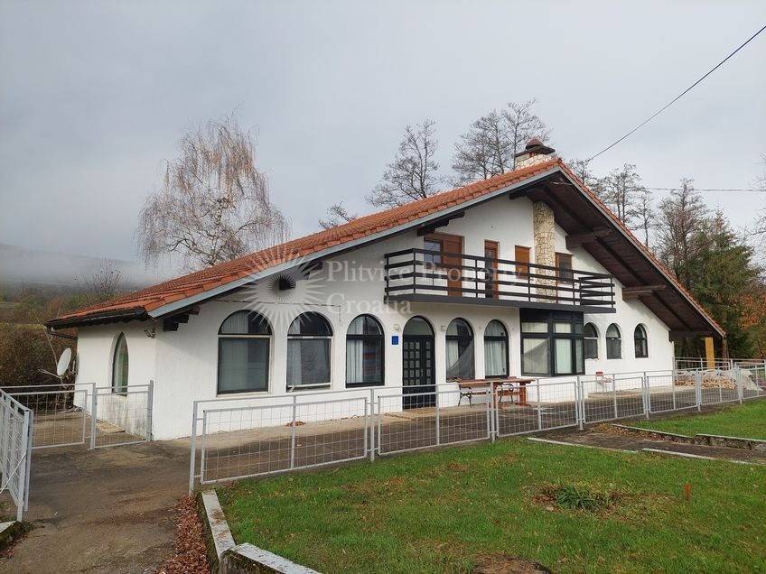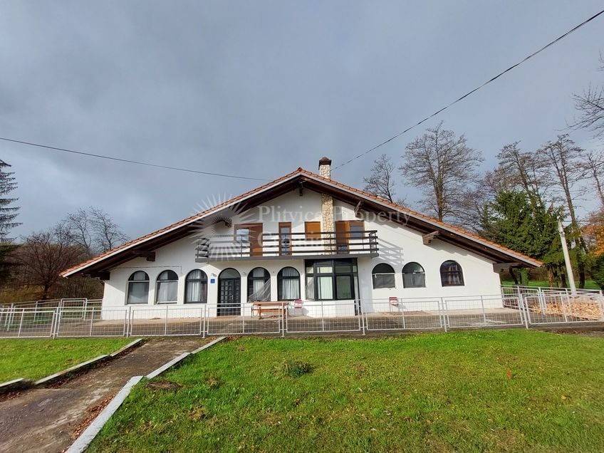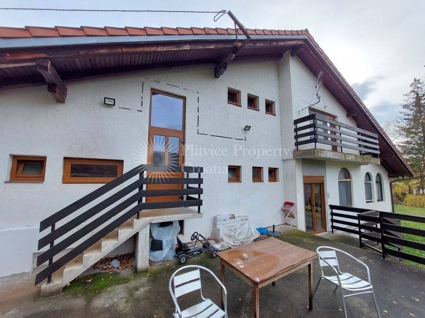 This versatile property near Josipdol offers a spacious guesthouse with multiple facilities, making it an excellent choice for use as a family residence, guesthouse, or restaurant. The estate sits on 2,179 m of land, beautifully positioned between the main road and a scenic stream, surrounded by large trees.