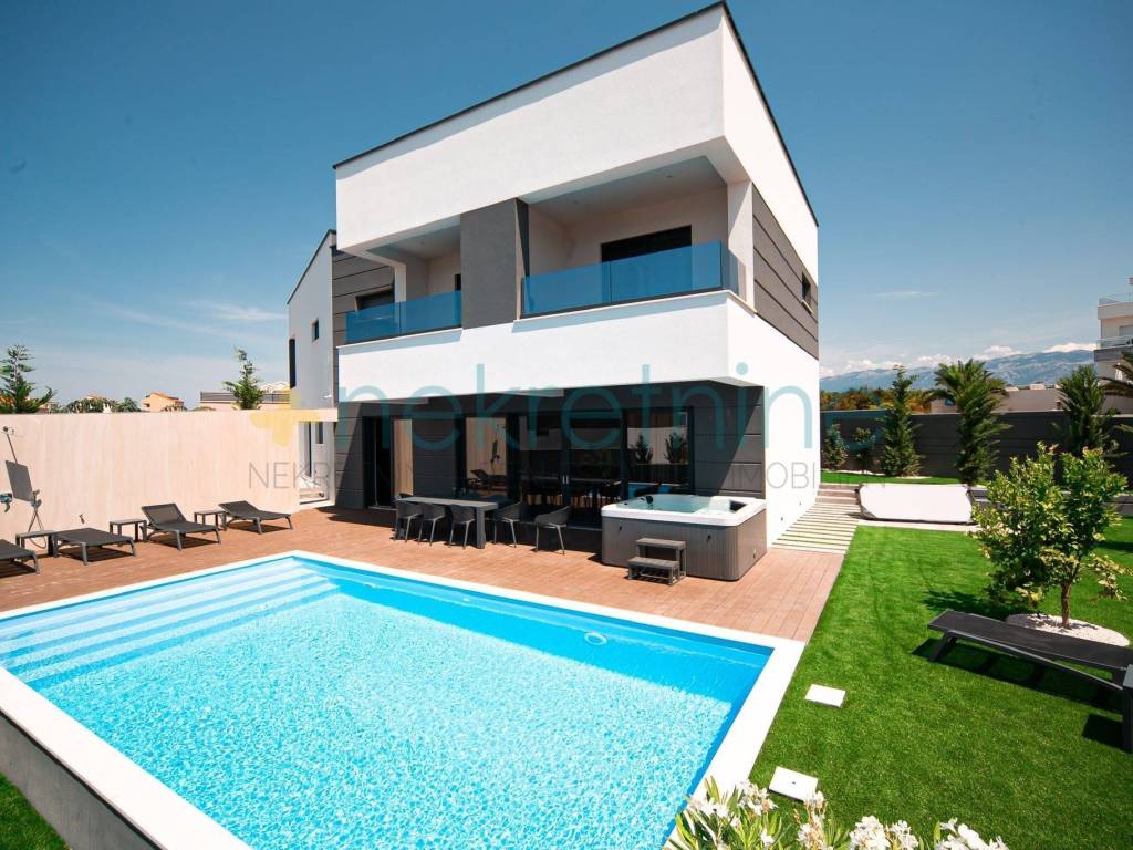 U vanjskom dijelu vile s osiguranom intimom dominira grijani bazen i jacuzzi koji su okruženi sunčalištem s ležaljkama, savršeno mjesto za opuštanje i uživanje u suncu tijekom dana. Vila ima i lijepo uređen vrt s roštiljem koji nudi prostor za vanjske večere ili druženja.