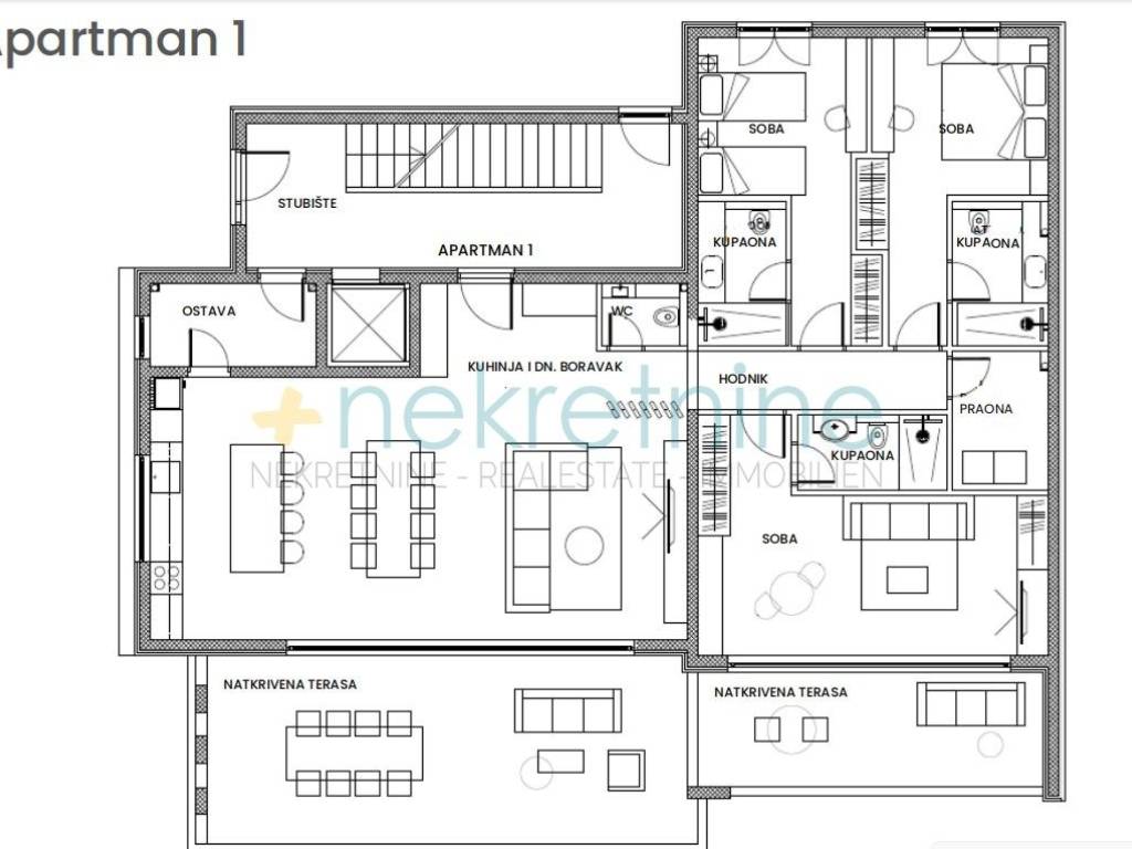 Apartmanima na drugom katu pripada krovna terasa s mogućim dodacima (infinity bazen, tuš, ljetna kuhinja, bioklimatska pergola)