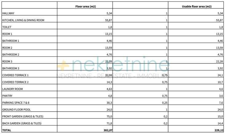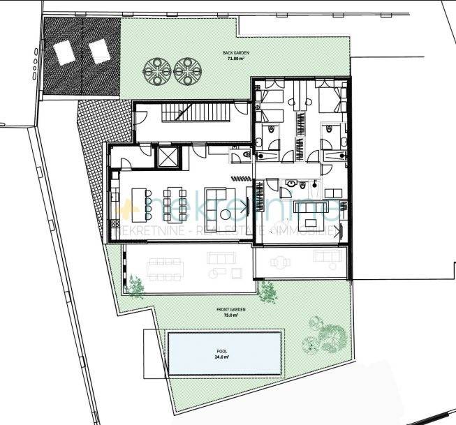 Prizemnim apartmanima pripada veliki vrt, vanjski tuš, ljetna kuhinja i infinity bazen