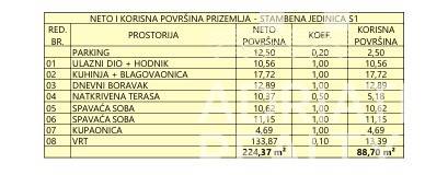 For sale is a two-bedroom apartment S1 located on the ground floor of a modern building with a total of nine apartments, in one of the most beautiful neighborhoods in Vodice. The building is situated in a quiet and well-maintained neighborhood with family houses and contemporary villas. It is 500 meters from the center, 300 meters from the elementary school, and 900 meters from the beach.