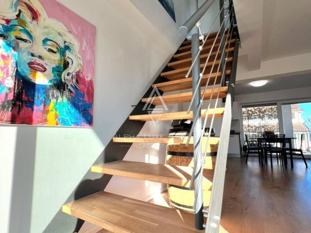 The apartment is located on the first floor of a small residential building and occupies a total area of 126 m² spread over two floors.