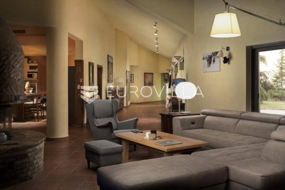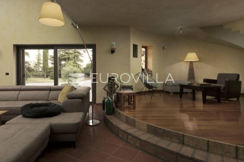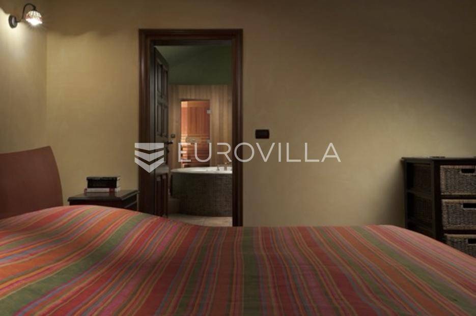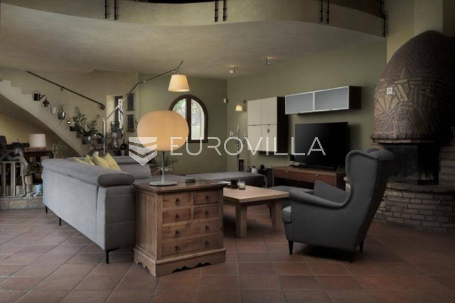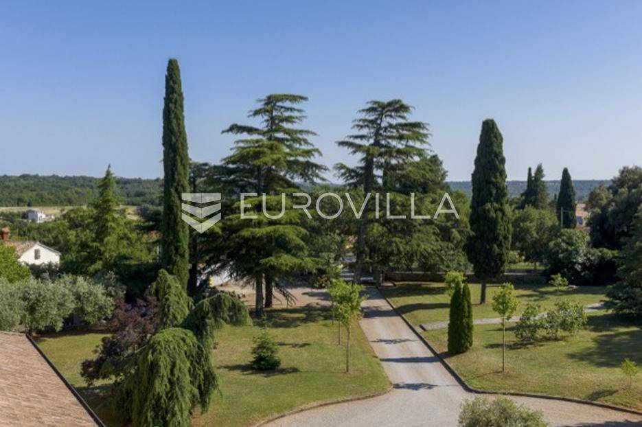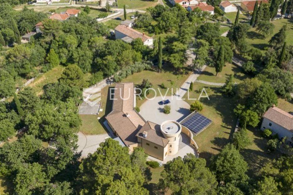 Otkrijte ekskluzivnu dvorac-vilu u idiličnoj okolici Barbana, dragulj istarskog krajolika. Ova jedinstvena nekretnina, ušuškana među zelenilom i okružena kamenim suhozidom, pruža oazu mira i privatnosti. Njen bezvremenski dizajn savršeno je stopljen s prirodom, nudeći spoj luksuza i autentičnosti. Idealna je prilika za profinjen životni stil u srcu Istre.Prostrana vila prostire se na 350 m2 pomno uređenog interijera, osmišljenog za ultimativni komfor. Sadrži pet spavaćih soba, idealnih za obitelj i goste. Glavna spavaća soba je privatna oaza s vlastitom kupaonicom, luksuznom saunom i prostranim 'walk-in' ormarom. Kuhinja je u potpunosti opremljena modernim aparatima. Otvorena galerija u kuli dodaje poseban šarm, dok dnevni boravak s kaminom i pogledom na terasu i dvorište poziva na opuštanje. Dodatna kupaonica osigurava praktičnost, a cijela vila opremljena je sustavom pametne kuće za modernu udobnost.Vanjski dio nekretnine jednako je impresivan, prostirući se na skoro 6000 m2 predivno uređenog građevinskog zemljišta. Ovo prostrano dvorište krase autohtono drveće, masline i mediteransko raslinje, stvarajući idiličan privatni park. Jugozapadna orijentacija osigurava obilje sunca, a veliki bazen s prostranom terasom savršen je za ljetne užitke i druženja. Uživajte u mirisu prirode i pogledu na bujni vrt koji nudi potpunu diskreciju. Uz glavnu garažu za tri vozila, postoji i dodatni vanjski prostor za izgradnju radionice ili ateljea.Osim estetske ljepote i komfora, vila nudi praktična rješenja i energetsku učinkovitost. Foto solarni paneli osiguravaju impresivnih 11 kW električne energije, čime se značajno smanjuju troškovi i doprinosi održivosti. Prostrana ostava dodatno olakšava organizaciju, a cijeli posjed je pomno održavan i spreman za useljenje.Lokacija u okolici Barbana pruža savršen balans mira ruralnog okruženja i blizine urbanih središta. U neposrednoj blizini nalaze se izvrsni restorani i drugi sadržaji. Do povijesne Pule stiže se za samo 20 minuta vožnje, dok je romantični Rovinj udaljen tek 35 km, nudeći jednostavan pristup svim čarima istarske obale. Ova nekretnina idealan je dom za one koji traže ekskluzivnost, prostranost i mir, uz pristup ljepotama Istre.Za sve informacije i organizaciju razgleda, stojimo Vam na raspolaganju.