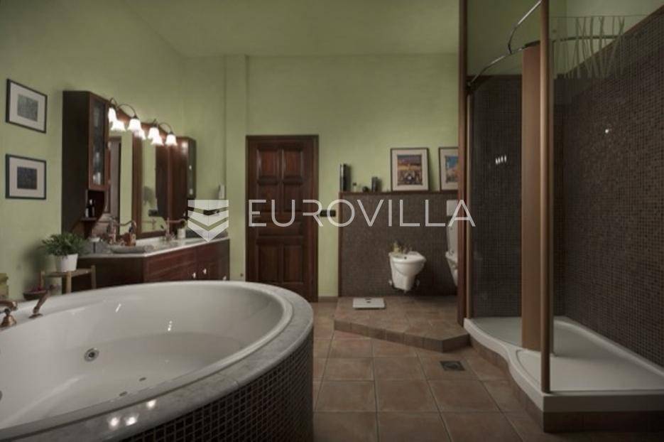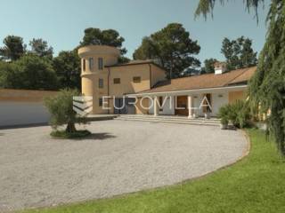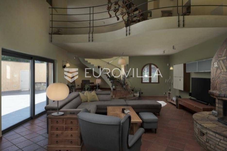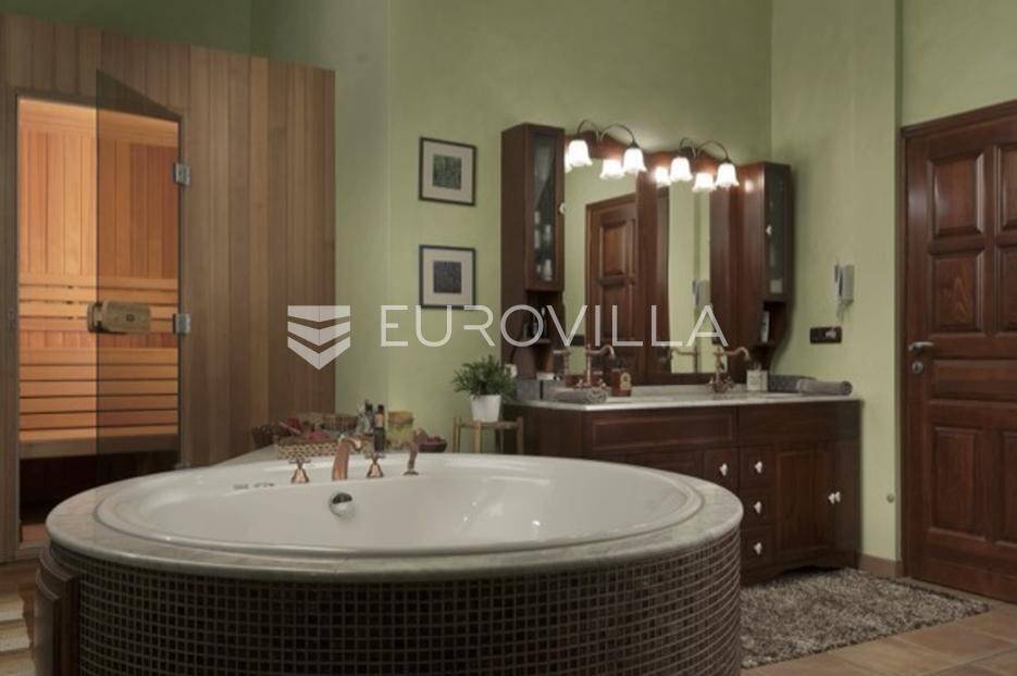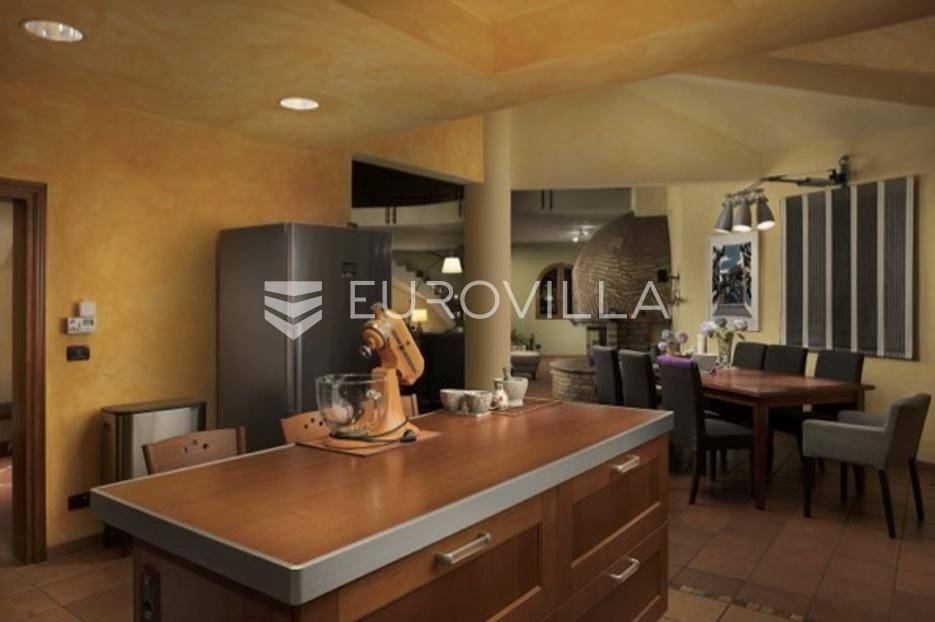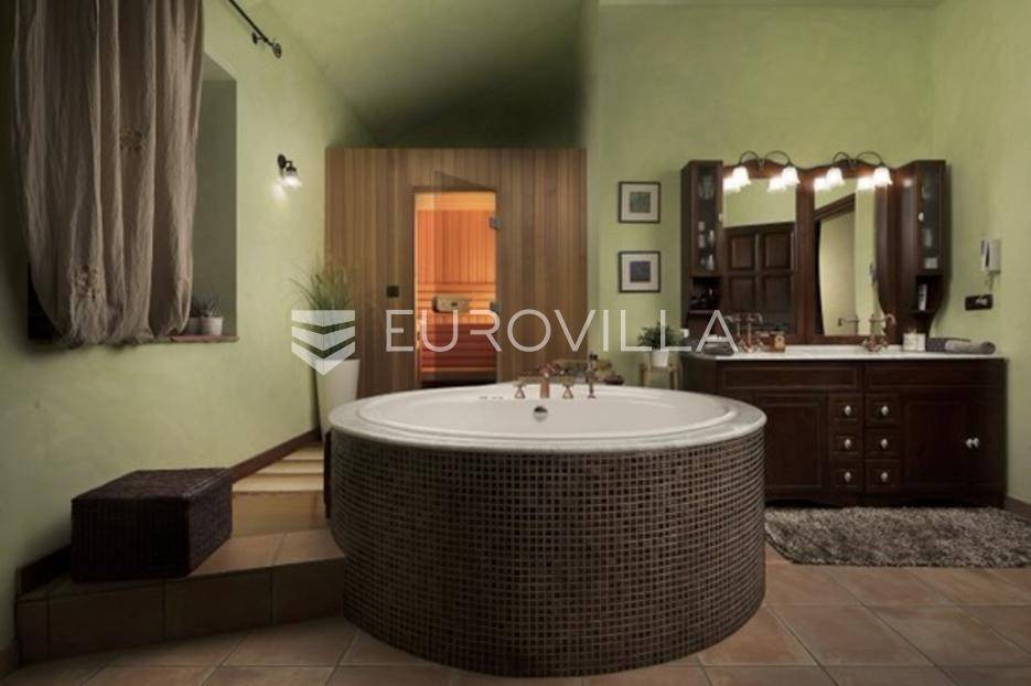 Otkrijte ekskluzivnu dvorac-vilu u idiličnoj okolici Barbana, dragulj istarskog krajolika. Ova jedinstvena nekretnina, ušuškana među zelenilom i okružena kamenim suhozidom, pruža oazu mira i privatnosti. Njen bezvremenski dizajn savršeno je stopljen s prirodom, nudeći spoj luksuza i autentičnosti. Idealna je prilika za profinjen životni stil u srcu Istre.Prostrana vila prostire se na 350 m2 pomno uređenog interijera, osmišljenog za ultimativni komfor. Sadrži pet spavaćih soba, idealnih za obitelj i goste. Glavna spavaća soba je privatna oaza s vlastitom kupaonicom, luksuznom saunom i prostranim 'walk-in' ormarom. Kuhinja je u potpunosti opremljena modernim aparatima. Otvorena galerija u kuli dodaje poseban šarm, dok dnevni boravak s kaminom i pogledom na terasu i dvorište poziva na opuštanje. Dodatna kupaonica osigurava praktičnost, a cijela vila opremljena je sustavom pametne kuće za modernu udobnost.Vanjski dio nekretnine jednako je impresivan, prostirući se na skoro 6000 m2 predivno uređenog građevinskog zemljišta. Ovo prostrano dvorište krase autohtono drveće, masline i mediteransko raslinje, stvarajući idiličan privatni park. Jugozapadna orijentacija osigurava obilje sunca, a veliki bazen s prostranom terasom savršen je za ljetne užitke i druženja. Uživajte u mirisu prirode i pogledu na bujni vrt koji nudi potpunu diskreciju. Uz glavnu garažu za tri vozila, postoji i dodatni vanjski prostor za izgradnju radionice ili ateljea.Osim estetske ljepote i komfora, vila nudi praktična rješenja i energetsku učinkovitost. Foto solarni paneli osiguravaju impresivnih 11 kW električne energije, čime se značajno smanjuju troškovi i doprinosi održivosti. Prostrana ostava dodatno olakšava organizaciju, a cijeli posjed je pomno održavan i spreman za useljenje.Lokacija u okolici Barbana pruža savršen balans mira ruralnog okruženja i blizine urbanih središta. U neposrednoj blizini nalaze se izvrsni restorani i drugi sadržaji. Do povijesne Pule stiže se za samo 20 minuta vožnje, dok je romantični Rovinj udaljen tek 35 km, nudeći jednostavan pristup svim čarima istarske obale. Ova nekretnina idealan je dom za one koji traže ekskluzivnost, prostranost i mir, uz pristup ljepotama Istre.Za sve informacije i organizaciju razgleda, stojimo Vam na raspolaganju.
