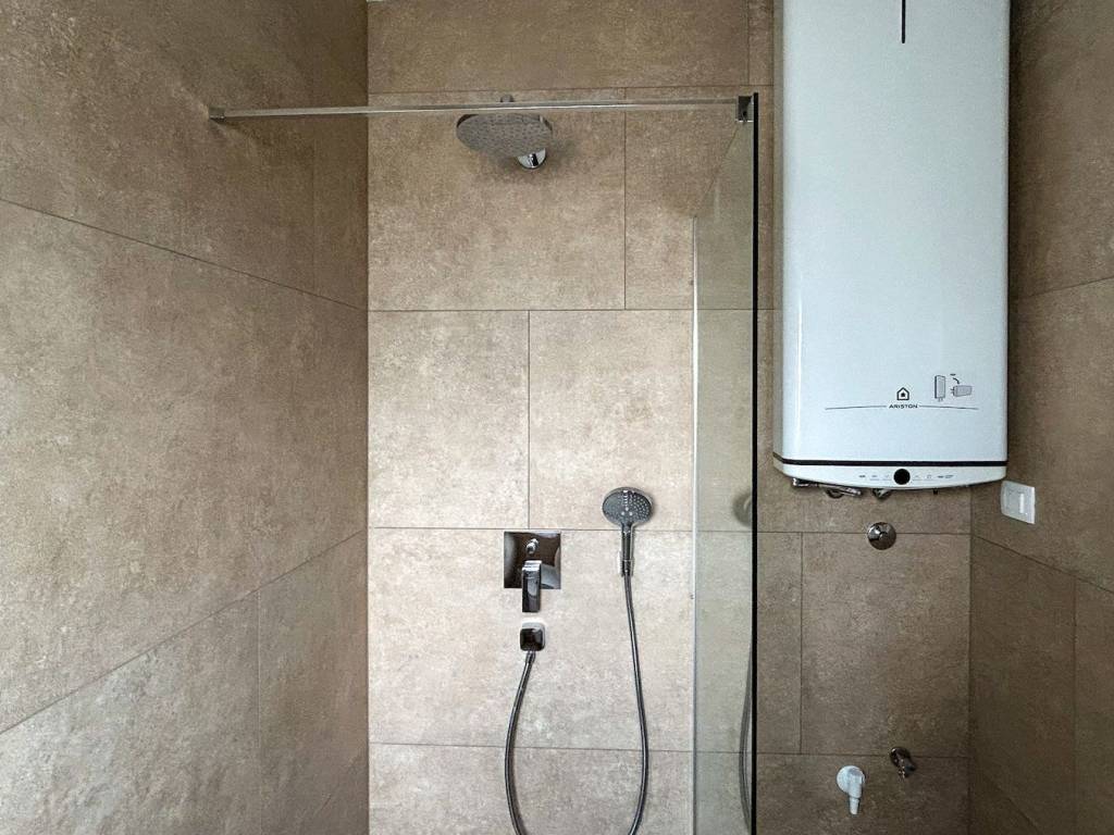 Heating and cooling are provided by air conditioners in the living room and bedrooms, while electric underfloor heating is installed in all rooms except bedrooms. Large-format ceramics and sanitary ware are of the highest quality, emphasizing elegance and modern design, while the bedrooms feature premium laminate flooring.