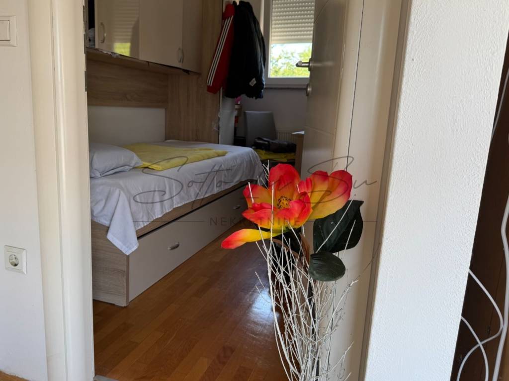 A three-room apartment is for sale in Žuti Breg, located on the third floor of a smaller residential building. This exceptionally bright and pleasant penthouse consists of an entrance hall, bathroom, two bedrooms, and a living room with a kitchen, with a total indoor floor area of 46.15 m. It also features a spacious terrace of 26.80 m, with official permission to be covered.