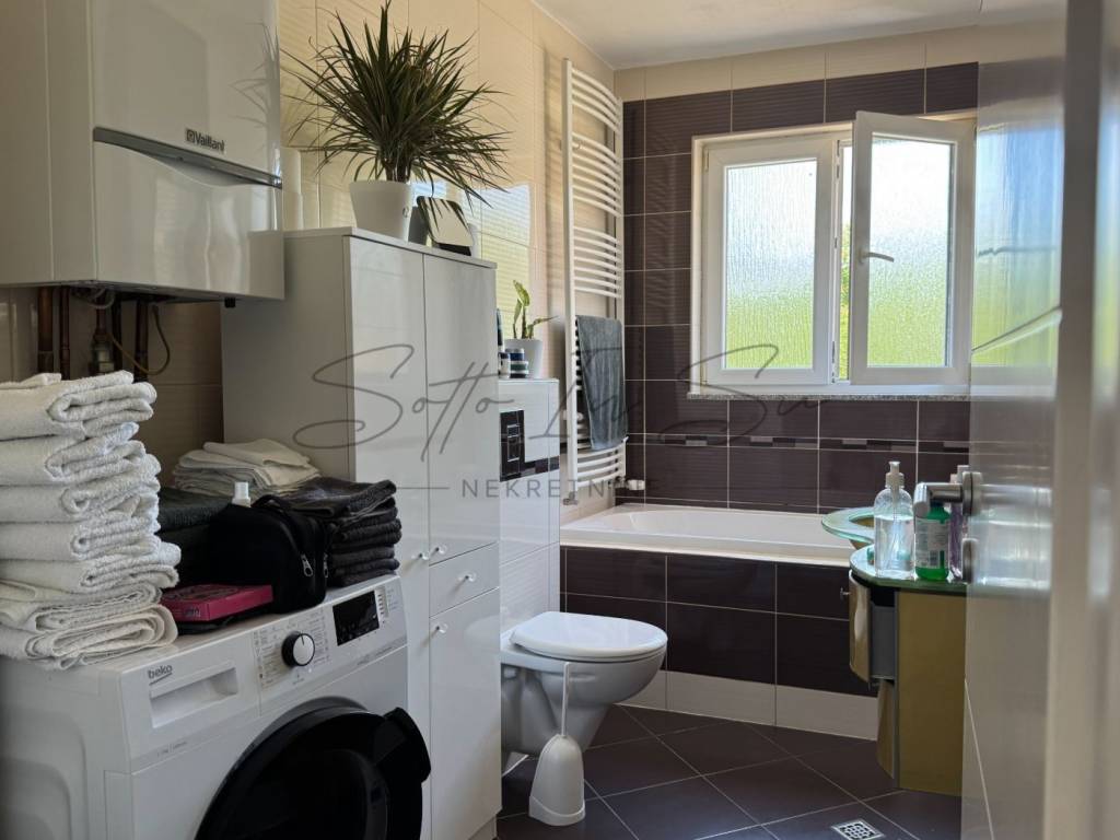 All necessary amenities for daily living are nearby, and thanks to its elevated position, the property offers a beautiful view of the greenery. Heating is gas central (independent system). The apartment is sold fully furnished and equipped with all necessary appliances.