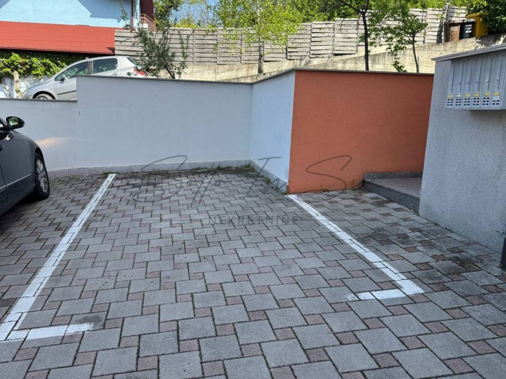 The apartment includes two parking spaces, each measuring 11.50 m, and the building was constructed in 2011. It is situated in a quiet, green area surrounded by family homes.