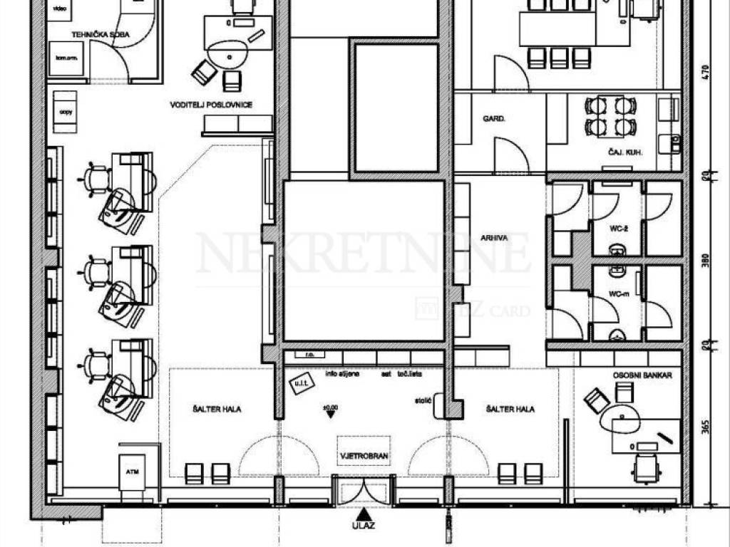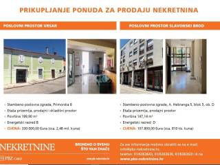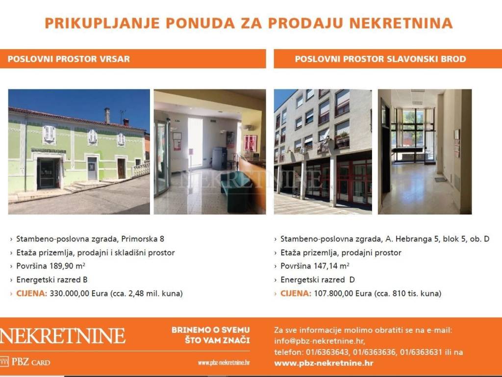 Stambeno poslovna zgrada nalazi se u Naselju A. Hebrang blok 5 , objekt D, poslovni prostor nalazi se u prizemlju zgrade bez lifta, podijeljen u dvije cjeline, ukupne povr��ine 147.14m2. Svaka cjelina ima svoj ulaz, ��alter salu i pomo��ne prostorije. Naselje A. Hebrang je jedno od najmla��ih brodskih naselja, a ujedno i najve��e. U naselju je izgra��eno 7 stambeno-poslovnih objekata. U prostoru izme��u blokova smje��ten je gradski trg sa trgovinama, bankom, po��tom, pekarama i caffe barovima. U sjevernom dijelu trga predvi��en je prostor za izgradnju Crkve koju okru��uju osnovna ��kola i Ekonomska ��kola, te vrti��. U tom dijelu predvi��ena je izgradnja Strojarskog fakulteta.