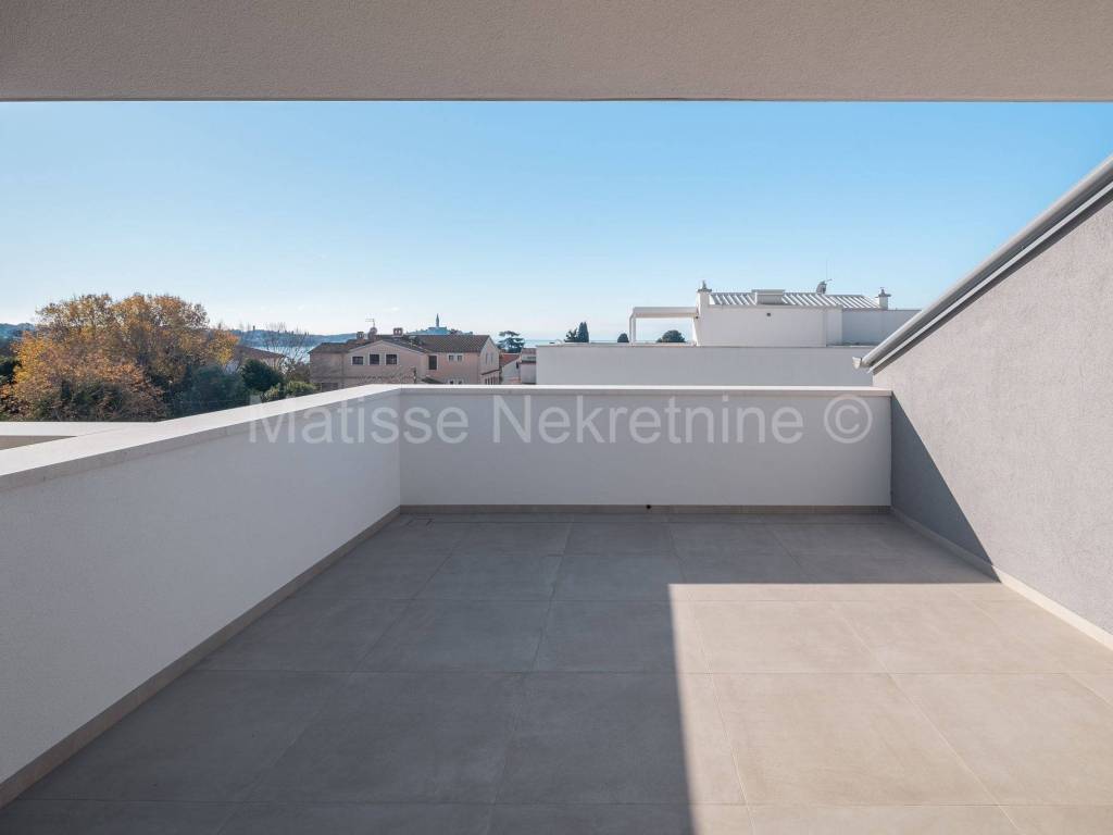 This luxurious apartment is located in a newly built, high-quality building in a quiet part of Rovinj. The building has a large garden and is surrounded by greenery.