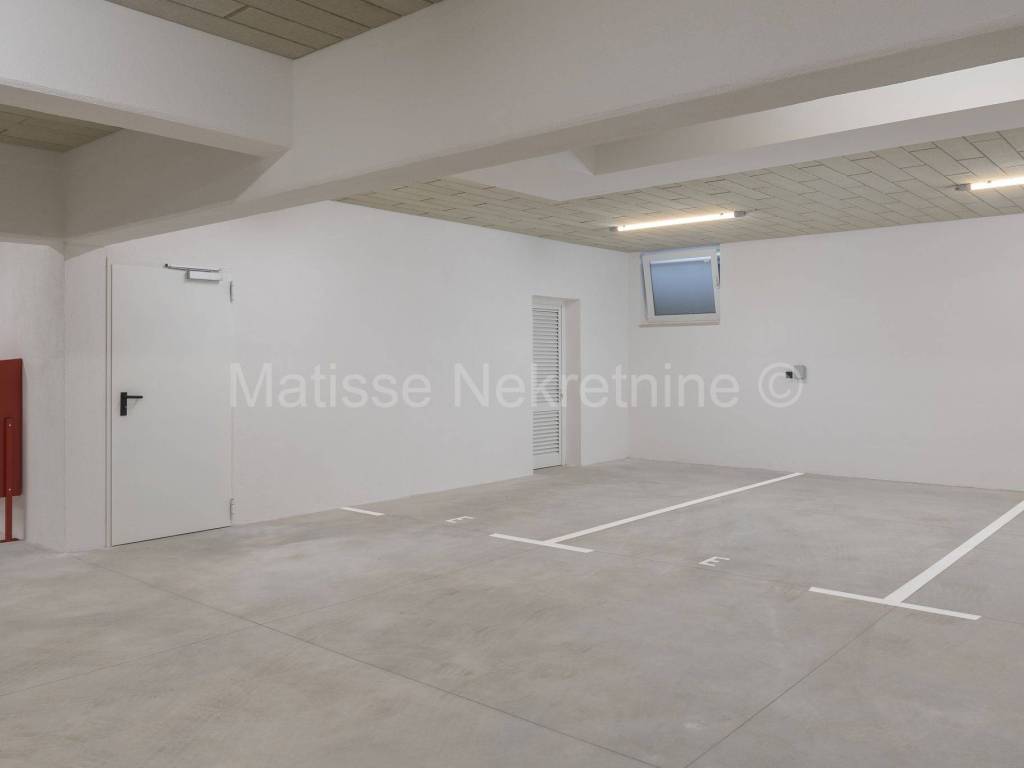 In the spacious underground garage, there are two parking spaces belonging to the apartment, and from the garage, there is an elevator that goes to the first floor to the apartment's entrance door.