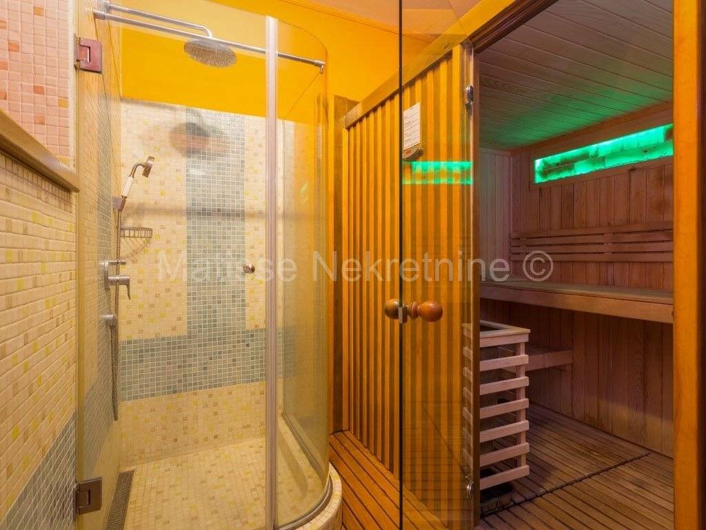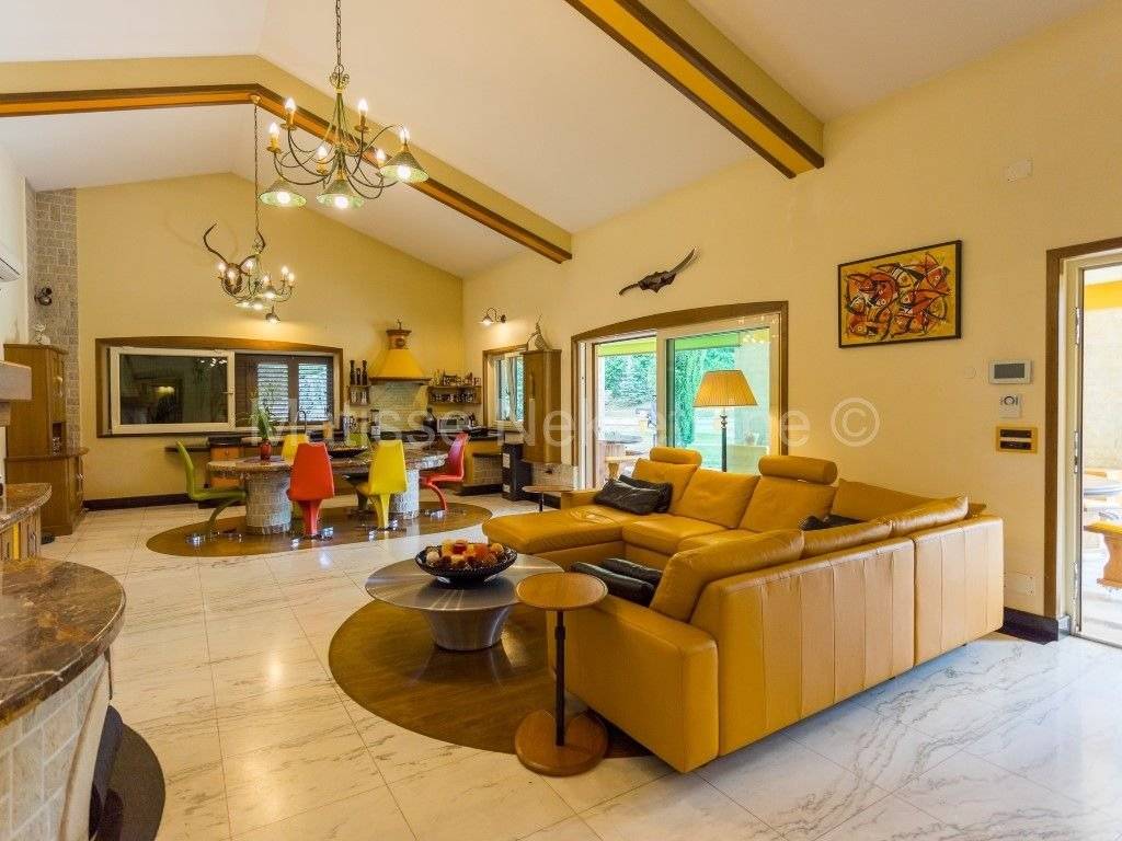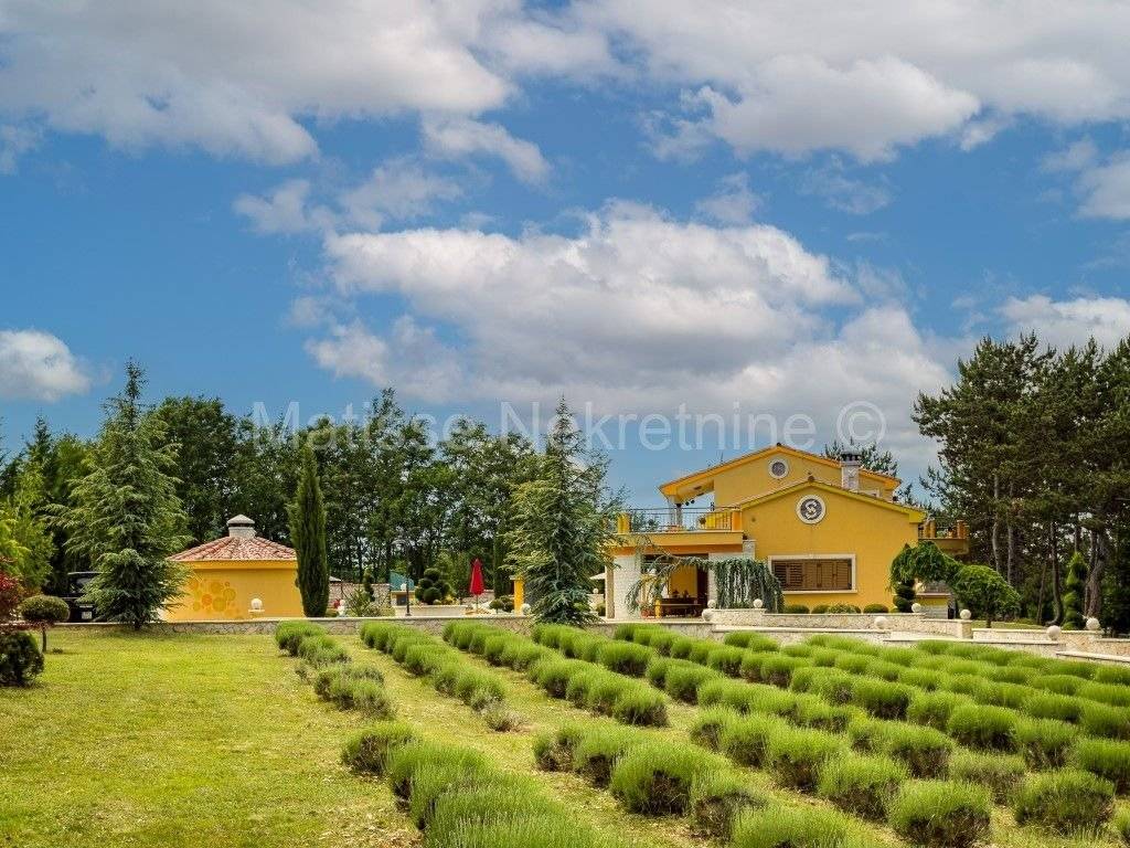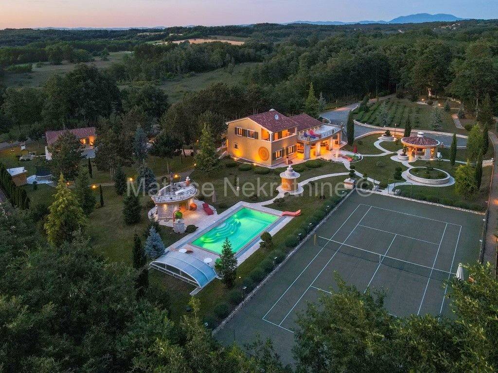 A beautiful estate located near a small Istrian village, in a green environment on about 43,000 m2 horticulturally completely landscaped land. There are 2 buildings on the land, a luxurious 3-room villa with an area of approx. 235 m2, and a smaller, nice guest house with an area of 79 m2.The villa has a garage, a tavern, where there is a pool table, a gym and a sauna, and a wine cellar.