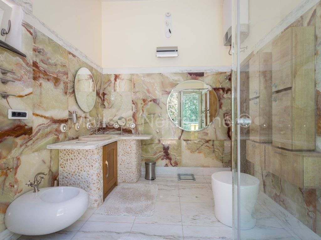 A carefully landscaped garden with many ornamental plants, trees, a 50 m2 swimming pool (with the possibility of water heating in the winter) completes this beautiful property, very unique on the market. An automatic irrigation system has been installed in the garden. The buildings are built with quality materials and fit perfectly into the environment in which they are located. There is also a landscaped tennis court, a summer kitchen with a fireplace and a sitting area on the property. This property is about 30 km from the sea, about 45 km from Pula and the airport.