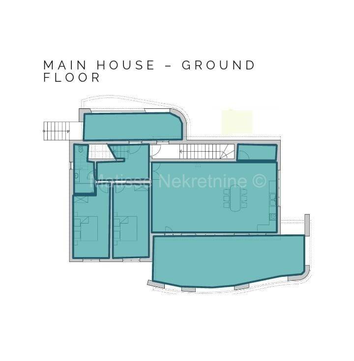 The smaller house consists of a living room, a kitchen, one bedroom and a bathroom. Both buildings are fully equipped with very beautiful and high-quality furniture, as well as comfortable garden furniture, which is all included in the sale price.