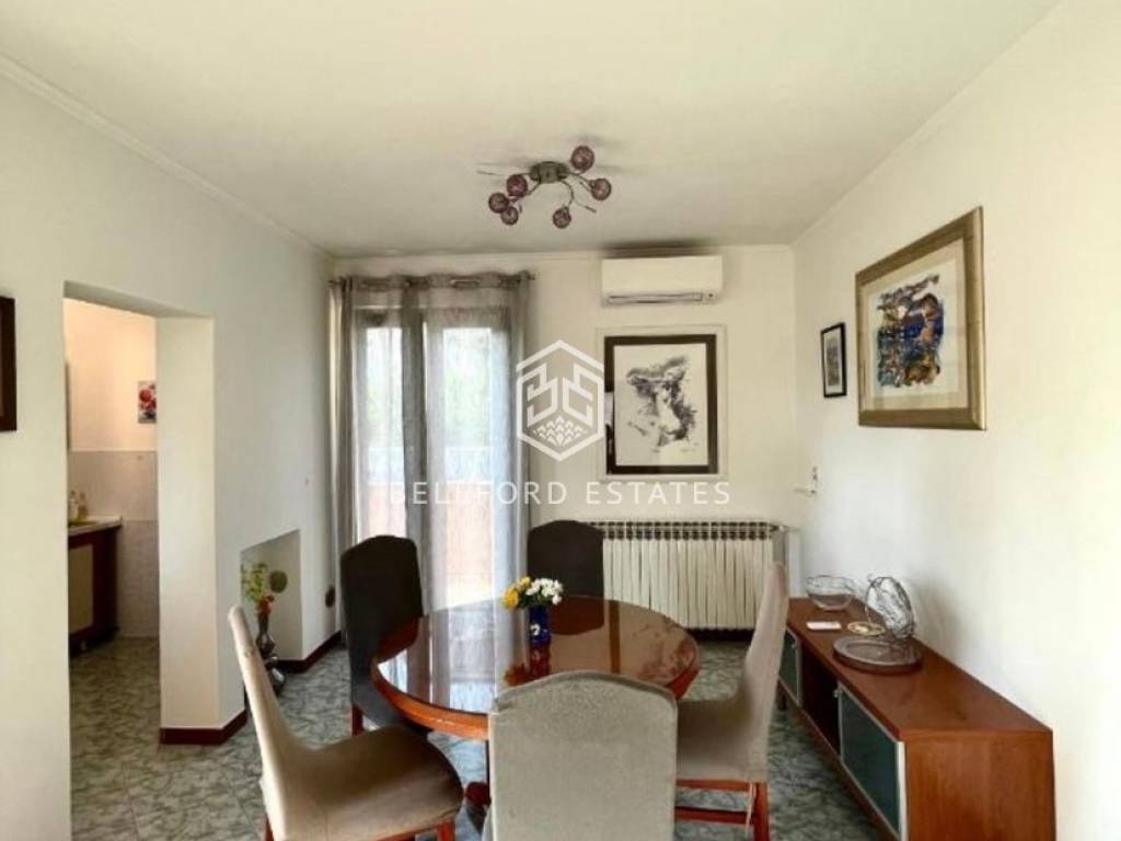 Nalazi se na prvom katu kuće sa dva vrta i ograđenim parkingom.
