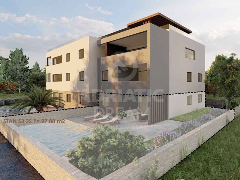 À vendre : un programme immobilier neuf et moderne, idéalement situé à Privlaka, à seulement 60 mètres d'une magnifique plage de sable fin et des eaux cristallines de l'Adriatique. Niché dans un cadre paisible et pittoresque, à deux pas de la mer, ce bien offre un parfait équilibre entre tranquillité et proximité des commodités essentielles.