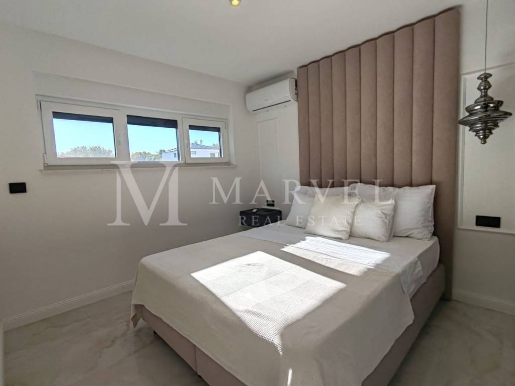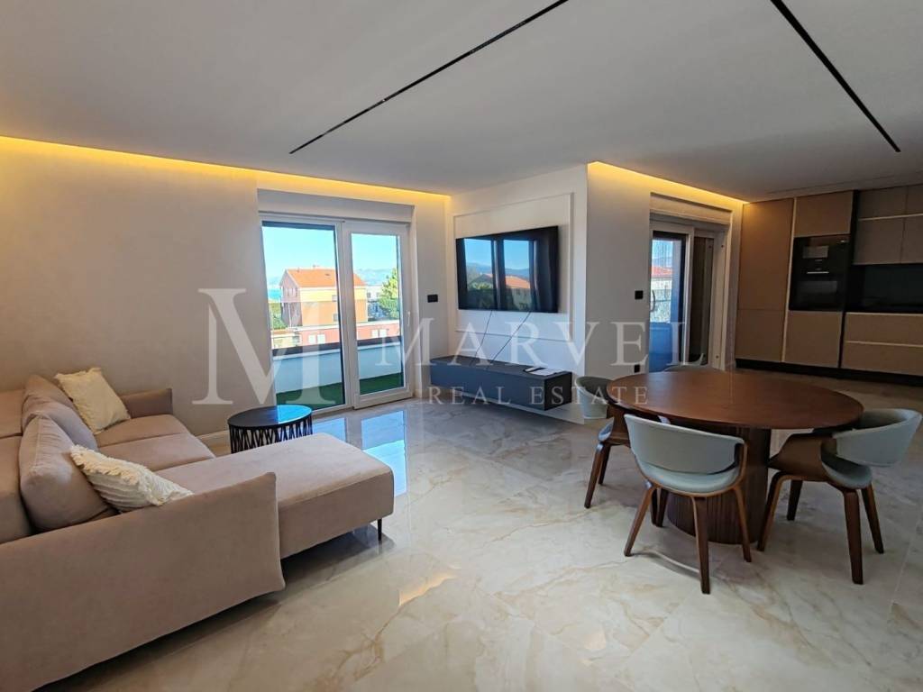 For sale is a first-floor apartment in a new building in Malinska, on the island of Krk, with a total area of 71 m. The apartment is luxuriously designed and completely new, furnished with carefully selected, high-quality pieces and modern details.