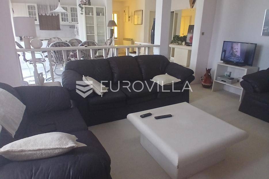 Iz dnevnog boravka i blagovaonice izlazi se na prostranu terasu s pogledom na more, gdje se nalazi i ljetna kuhinja. Ispod terase smještena je gustirna (spremnik za vodu) s hidroforom.