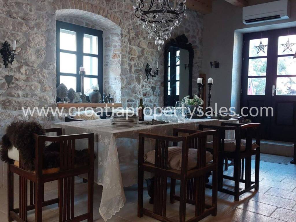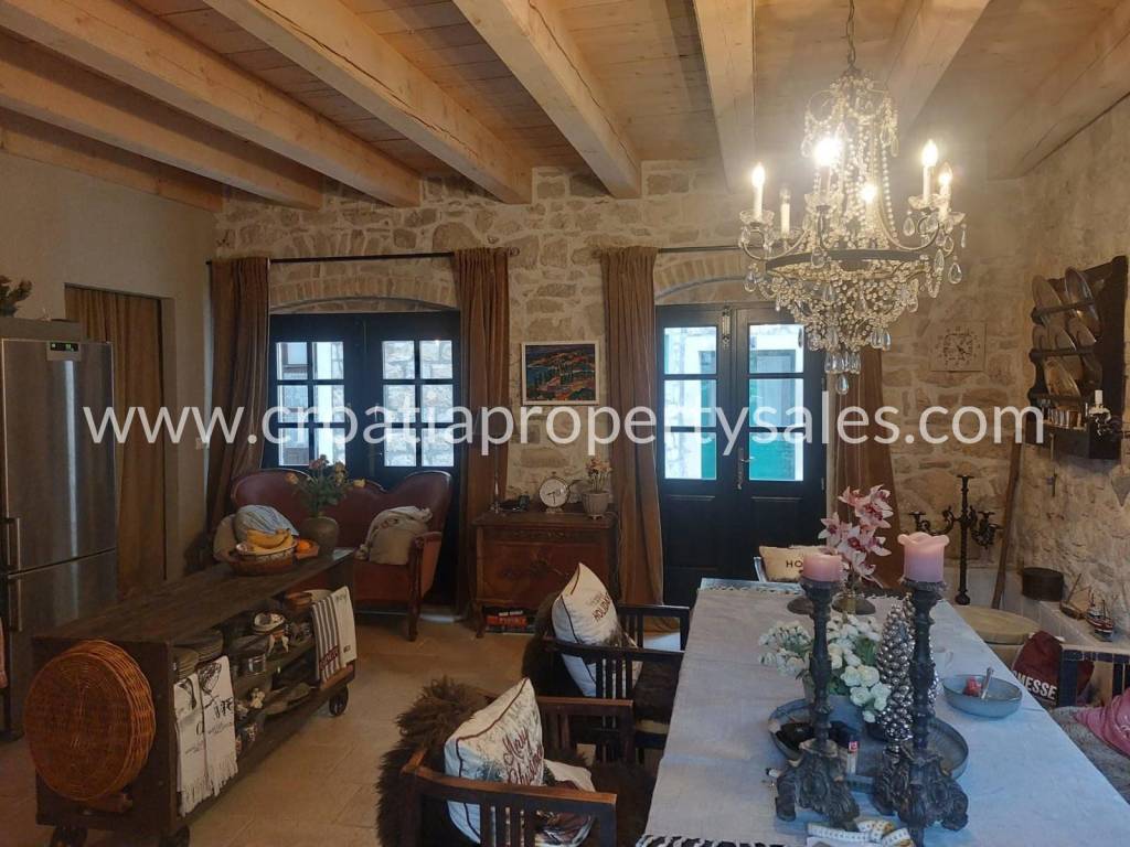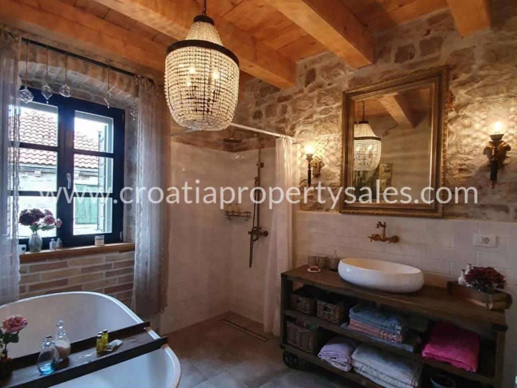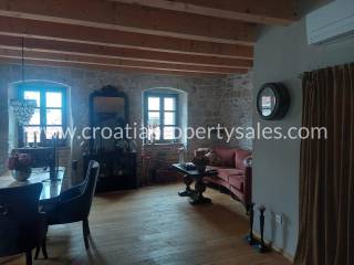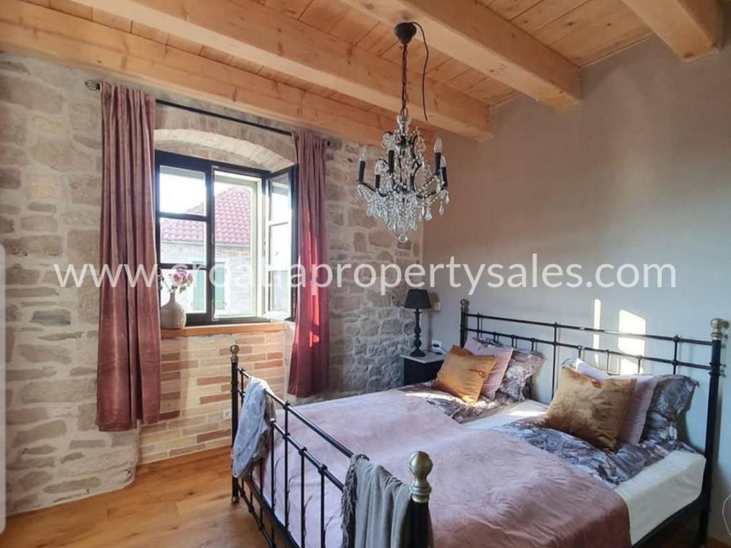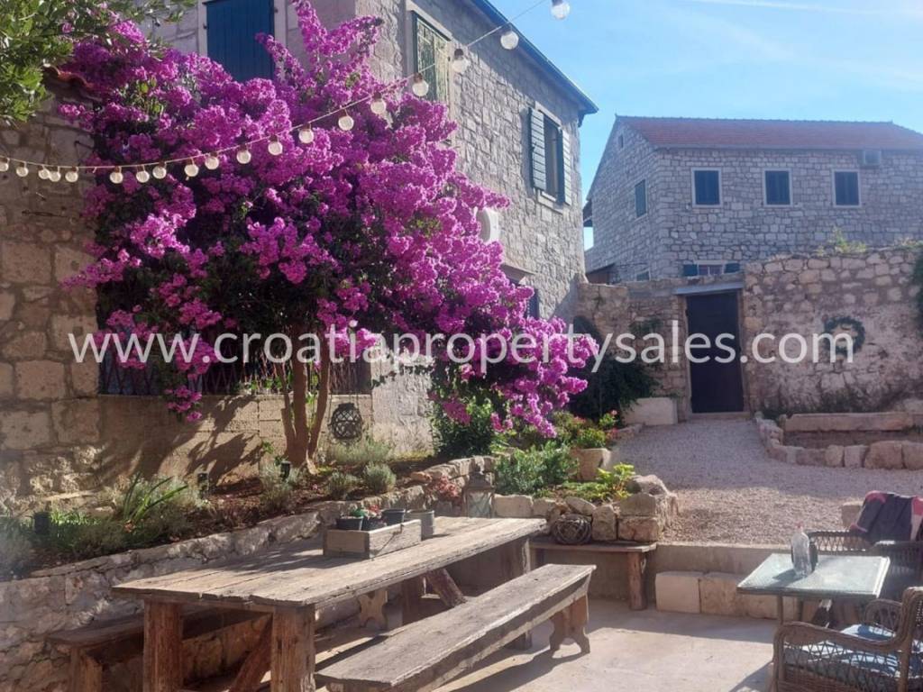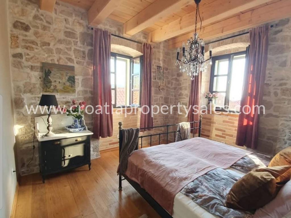 Stunning old stone house in the heart of a charming little fishing village on Brač.The property consists of two old stone house,  sharing a large  garden of approximately 119 m2. The larger house was totally renovated in 2020 to a very high standard. This property is over 4 levels with a total floor aera of 192 m2.It consists of a large living space on the ground floor, with access out to the back garden. There is also a small but functional kitchen area and a large bathroom including shower and bath.The first level consists of a large living/dinning area of 48 m2. The second level consists of two double bedrooms and hall, and a full bathroom also with a bath.Loft level consists of two double bedrooms, one with toilet and hand basin. Both bedrooms have a Velux window with beautiful panoramic views over the sea and over towards Split.This house is totally renovated with new roof, isolation and beams,  all levels with oak floor, except the first floor which has  beautiful Brač stone tiles floor, including water proof membrane under. All levels have also big wooden beams. All windows and doors are in wood with doble glass. The shutters on all windows are solid wood.The house has retained much of its charm with exposed  stone walls to add to the charm of this typical dalmatic style stone villa.The stairs linking all levels are a combination of black steel and solid oak.Both full bathrooms are tiles on the floor and half way up the walls, and have underfloor heating. Washing machine is situated in the down stairs bathroom.There are two solar panels installed on the roof for water heating and a 300 lt hot water tank in the basement of the adjoining house. Heating/cooling of the house is by 5 reverse cycle heat pumps.The second stone house is attached to the main house with access from the street at the front or from a gate at the rear of the property.The two houses can be connected on the first level of each house  giving more opportunity to create a very large house if required.  Otherwise both houses can be separate for living/rental opportunities.This second house requires total renovating and is over 4 levels with a total area of ca 120 m2. This gives the buyer an opportunity to create their own touch on this property.The total properties are located in a prime situation in the absolute center of this charming town and are  an incredibly good rental  opportunity for either an investor or a large family who wish to live in one house and rent out the other house.All amenities are within a 1-5 minute walk and include bars, restaurants, shops, pharmacy, tennis courts and many beautiful beaches.The houses are ca. 50 m from the riva where you can enjoy a drink/meal overlooking the beautiful Adriatic sea and the relaxing dalmatic lifestyle.This is a very rare opportunity to own this very special property in the heart of one of the most charming towns on Brač.Very rarely does a property of this caliber come up for sale in the middle of town yet with the privacy of your own garden where you can enjoy long warm evenings together with family and friends.