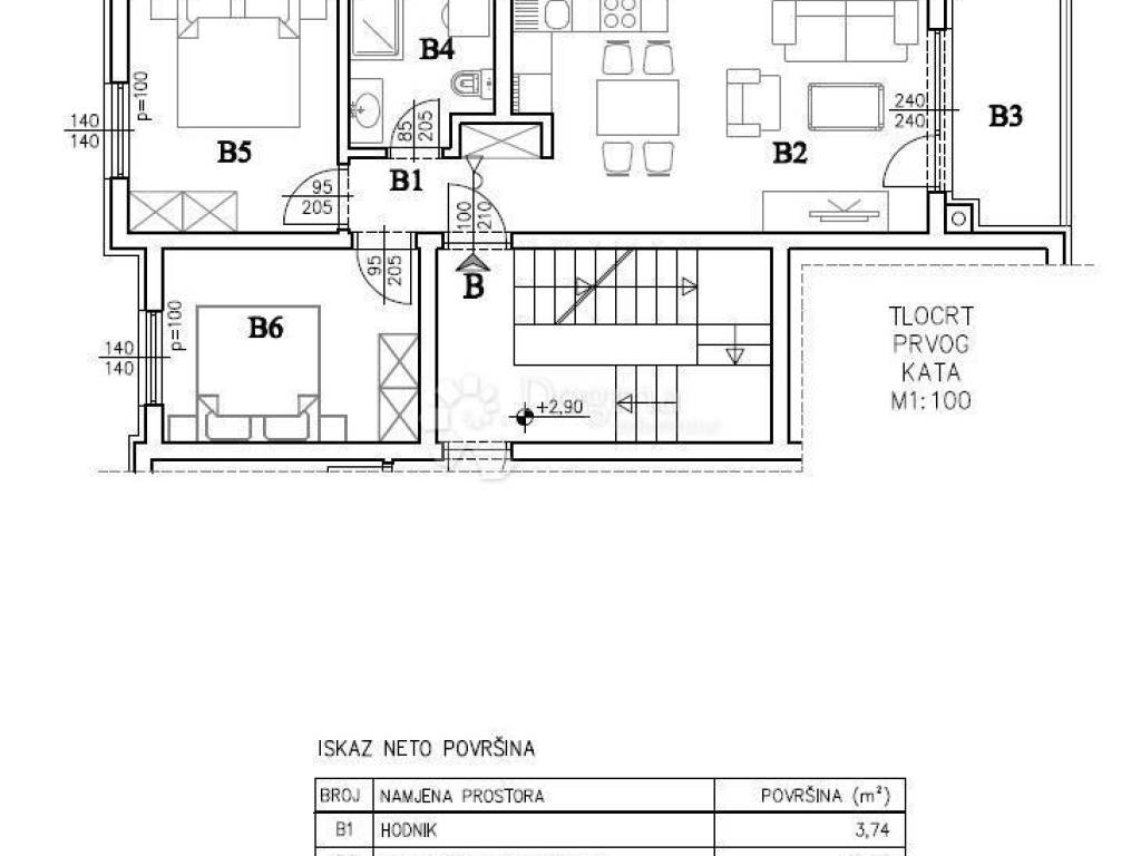 Appartement 3 chambres neuf, premier étage, Centar, Pula