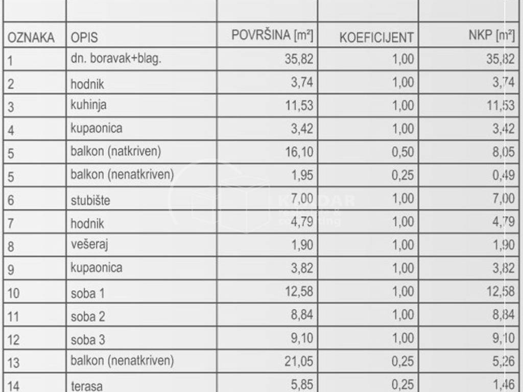 Ukupno neto površine 117,80m2 (bruto 147,50m2)