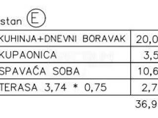 The apartment is located on the 1st floor of a newly built residential building with 11 residential units. The apartment has a surface area of ​​36.93 m2. The apartment consists of a living room with an open-space kitchen and dining room, a bedroom, a bathroom and a covered terrace. The terrace offers a view of Tar and nature.