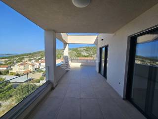 In Primošten-Dolac, an exclusive penthouse apartment with a stunning, unobstructed sea view is for sale. Situated on the top floor of a modern building with eight residential units, just a few minutes’ walk from the sea, it offers a spectacular panoramic view of the Adriatic and the Mediterranean coastline. Apartment S8 features an open-plan living and dining area with kitchen, a spacious terrace (41.5 m² total, 11.06 m² covered and 30.5 m² open) with electricity and water connections and a prepared drain for a hot tub (not included in the price), one bedroom, one bathroom, and an entrance area. A parking space is included in the purchase price. Restaurants are within walking distance, the center of Primošten is about 2.8 km away, and Split Airport is approximately 40 km away. The penthouse is ready to move in (unfurnished) and offers peace, privacy, and an unforgettable sea view.