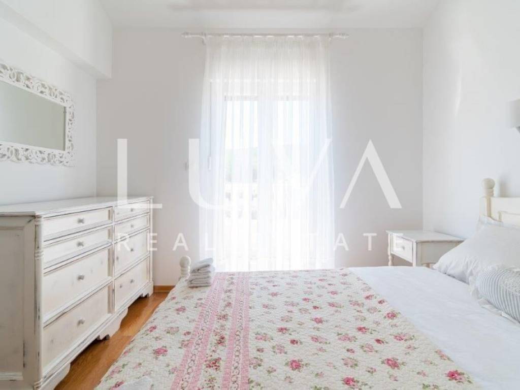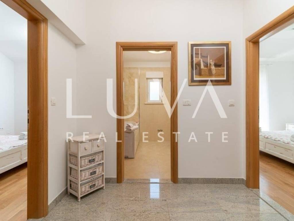 A holiday house is for sale, located on a large estate in Dicmo. Dicmo is a charming village in the Dalmatian hinterland, well connected to Split and just a few minutes' drive from the highway. The house is situated on an exceptionally large estate of 13,092 m², fully fenced, ensuring peace and privacy for its residents. Built in 2014, the house has a surface area of 270 m² and spans 3 floors. It features 6 bedrooms, 4 bathrooms, and 2 toilets. In front of the house, there is a large outdoor pool and a covered terrace with a dining table, while the back of the house provides ample parking space and a garage for 2 cars. In front of the pool, there is also a tennis court, and the estate has enough space for additional playgrounds, making it ideal for sports enthusiasts.