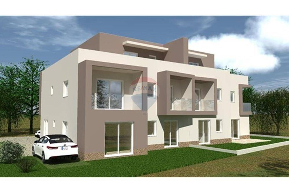 Moderna zgrada građena sukladno postojećim standardima gradnje. Objekt se gradi na 3 etaže (prizemlje, prvi kat i drugi kat). Lijepo uređena okućnica, vanjsko parkirno mjesto, asfaltiran pristup, ravan teren i ugodan put do centra grada i mora.