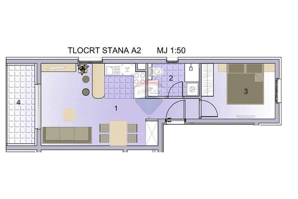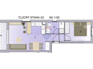 Stan A2 je na prvom katu i ukupnekvadratura iznosi 43,09m2.