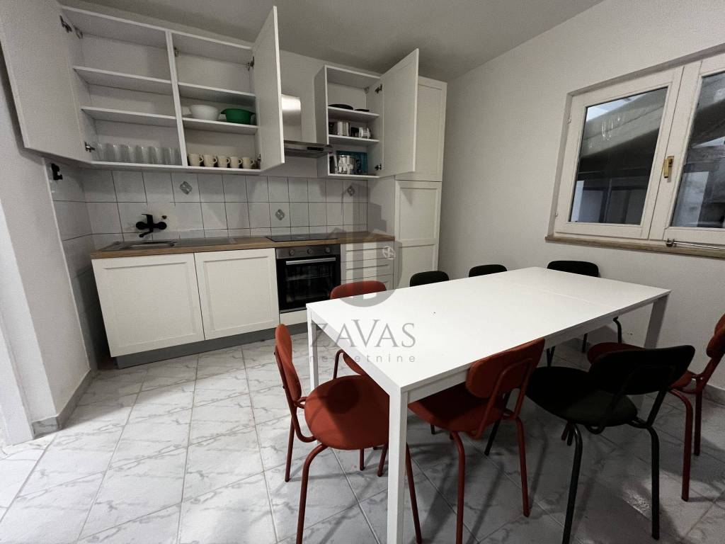 U prizemlju se nalazi veliki dveni boravak s integriranom kuhinjom, veliki sanitarni čvor (2 wca, 3 tuš kabine te 2 umivaonika), dvije velike spavaće sobe.