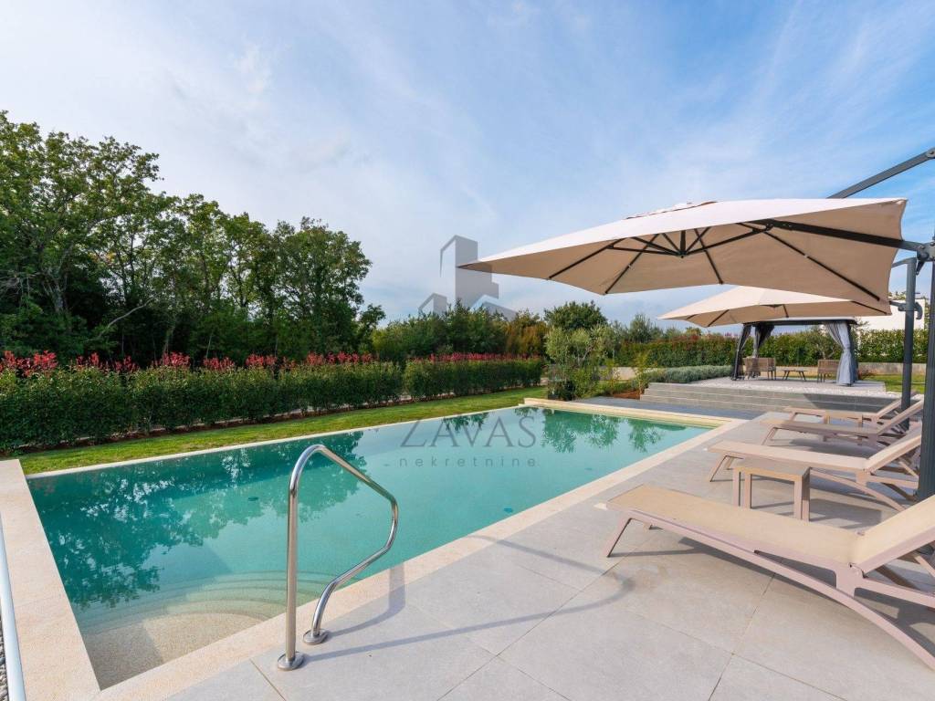 Diese beeindruckende moderne Villa befindet sich im Herzen Istriens und bietet höchsten Luxus und Privatsphäre. Die Villa erstreckt sich über 403 m, mit einem Gesamtgrundstück von 1450 m. Sie bietet Platz für bis zu 8 Gäste in vier geräumigen Schlafzimmern, jedes mit eigenem Bad.