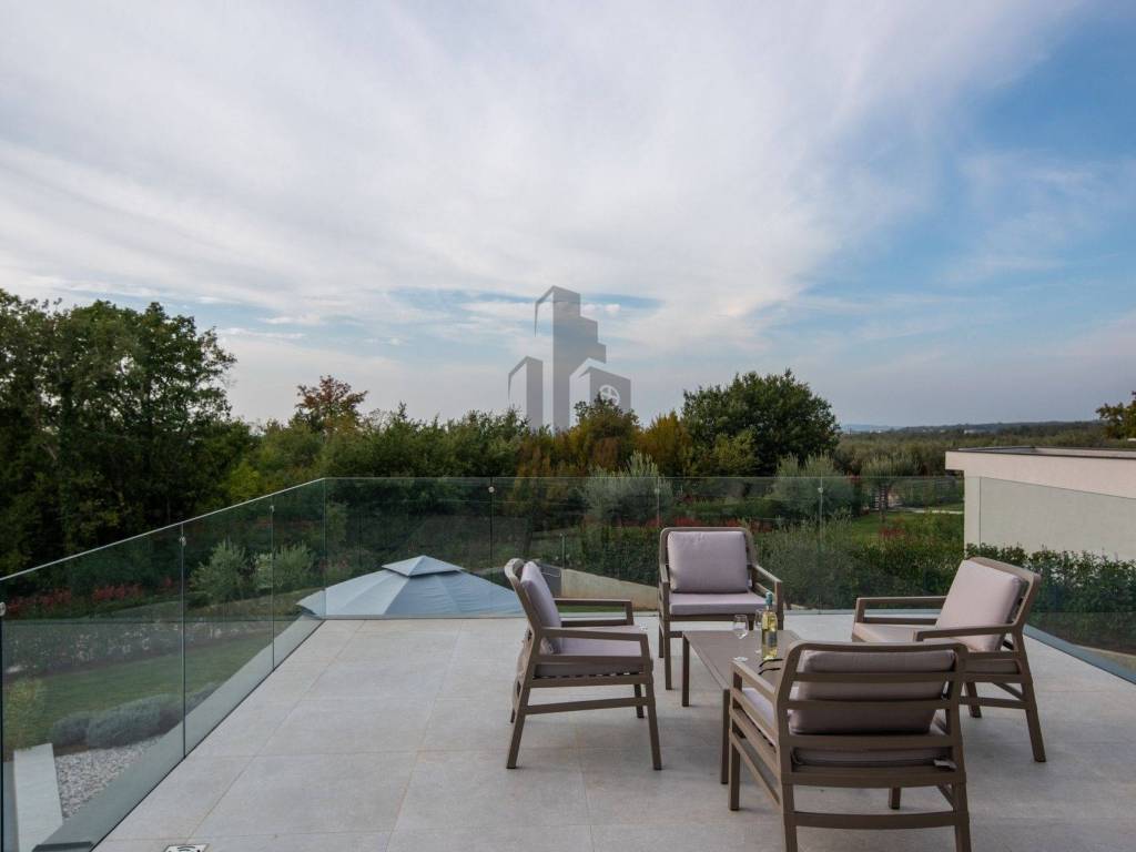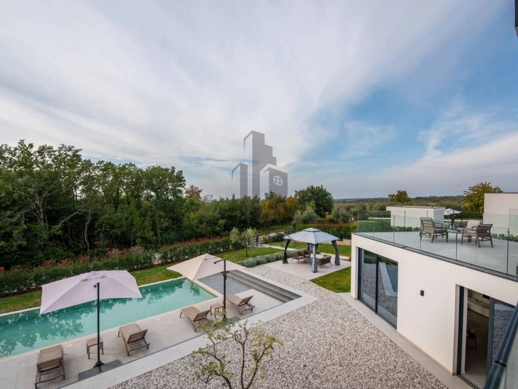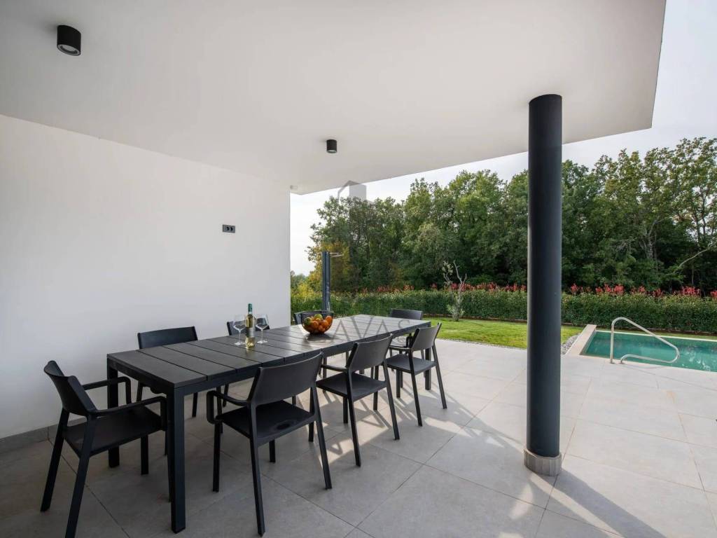 Ova prekrasna moderna vila smještena u srcu Istre nudi vrhunski luksuz i privatnost. Prostire se na 403 m, dok se zemljište prostire na 1450 m. Vila može ugostiti do 8 osoba u četiri prostrane spavaće sobe, svaka s vlastitom kupaonicom, čime se osigurava maksimalna udobnost.