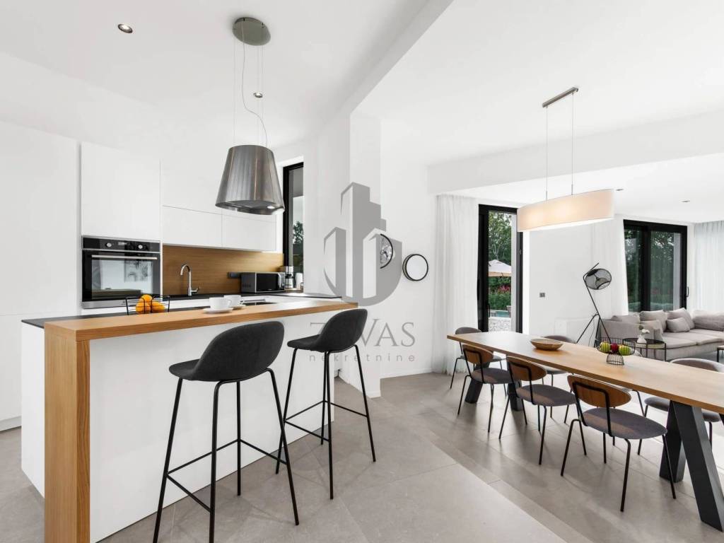 This stunning modern villa is located in the heart of Istria, offering premium luxury and privacy. The villa covers 403 m, with a total land area of 1450 m. It accommodates up to 8 guests in four spacious bedrooms, each with its own bathroom, ensuring maximum comfort.