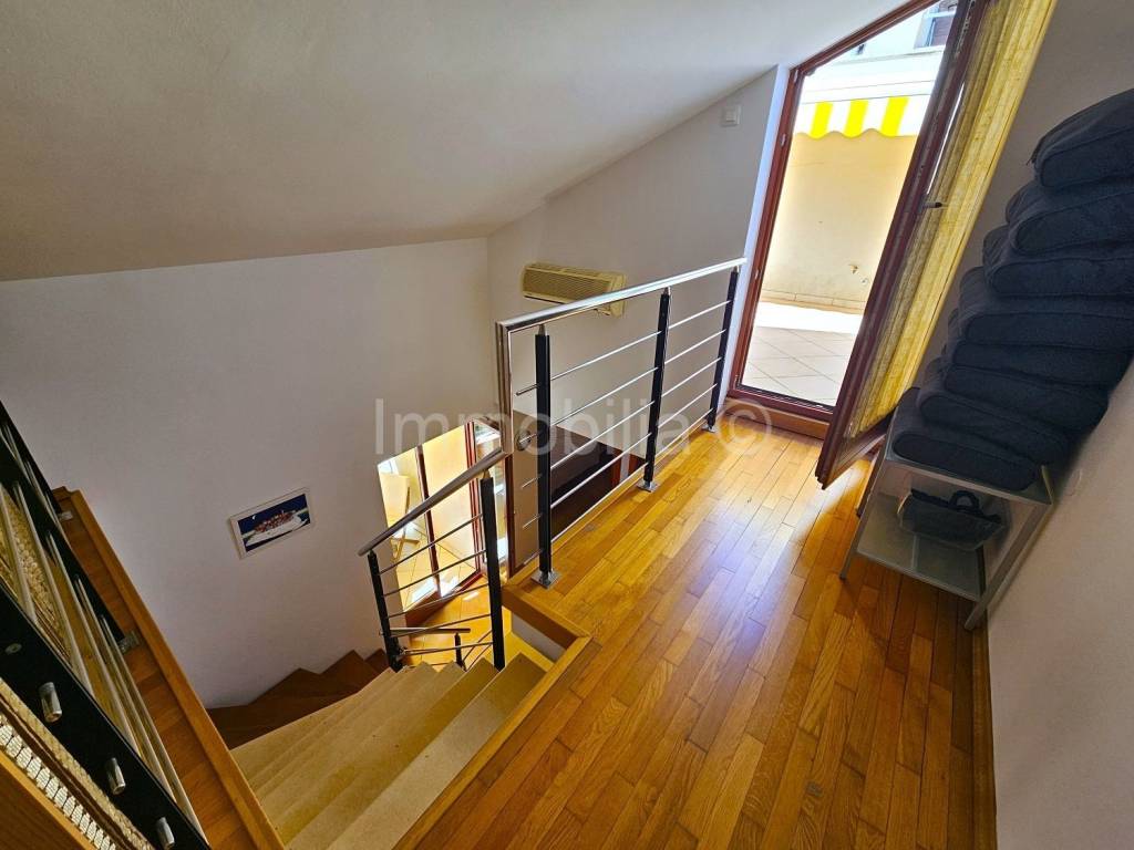 Prodaje se dvoetažni sapartman površine 39 m2 koji se nalazi u Premanturi na drugom (zadnjem) katu novije manje zgrade.Apartman se sastoji od dnevnog boravka i kuhinje, kupaonice, spavaće sobe, natkrivene terase, te galerije koja se sastoji od dodatne manje spavaće sobe sa izlazom na veliku privatnu krovnu terasu veličine oko 15 m2. Apartmanje opremljen protuprovalnim vratima, klima uređajem, svim potrebnim kuhinjskim aparatima te je u potpunosti namješten.