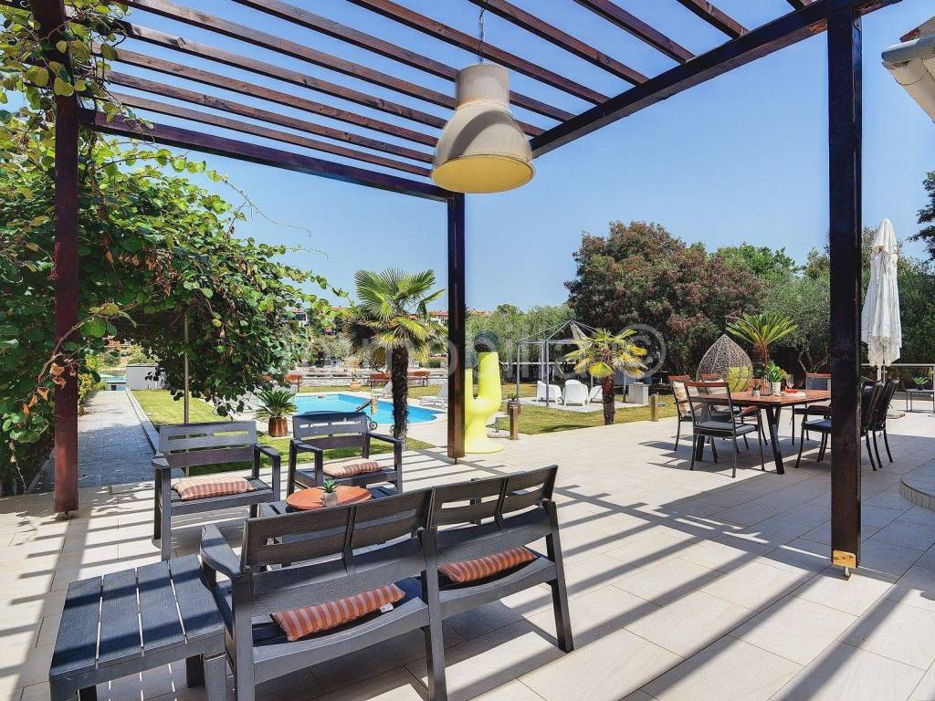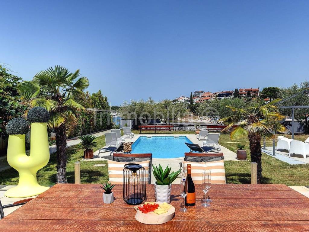 Nudimo exluzivnu vilu na exluzivnoj lokaciji do prekrasne plaže! SAMO 10 M DO MORA ! Samostojeća vila prizemnica na građevinskoj parceli od 1117 m2. Sastoji se od glavnog stana i manjeg apartmana. Glavni stan se sastoji od dnevnog boravka, kuhinje i blagovaone , 2 spavaće sobe i kupaonice. Iz dnevnog boravka i spavaće sobe pruža se prekrasan pogled na more.