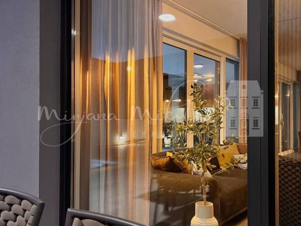 Cijeli interijer odiše sunčevom svjetlošću zahvaljujući staklenim stijenama vrhunske aluminijske stolarije koja povezuje dnevni boravak sa izlaskom na natkrivenu terasu u sklopu koje se nalazi vanjski grijani bazen i sunčalište.