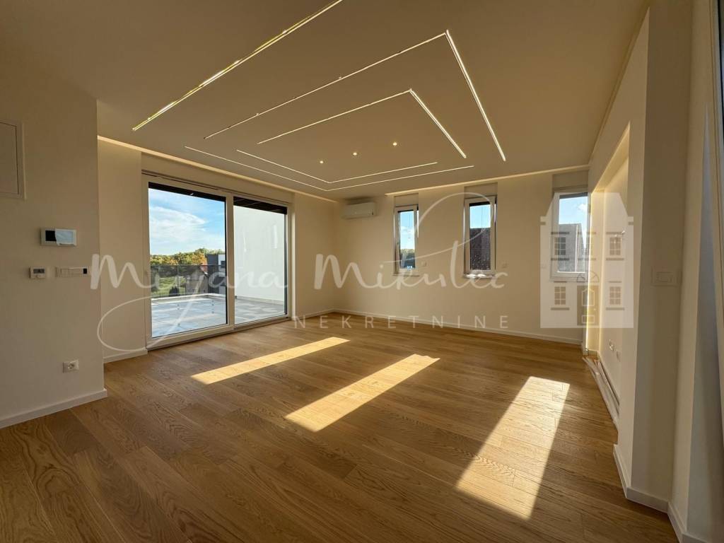 Podno grijanje u cijelom stanu, svaka soba ima svoj termostat, pvc stolarija, električni podizači roleta, komarnici, klima uređaji u svakoj prostoriji, led rasvjeta, video portafon, priprema za ljetnu kuhinju na krovnoj terasi.