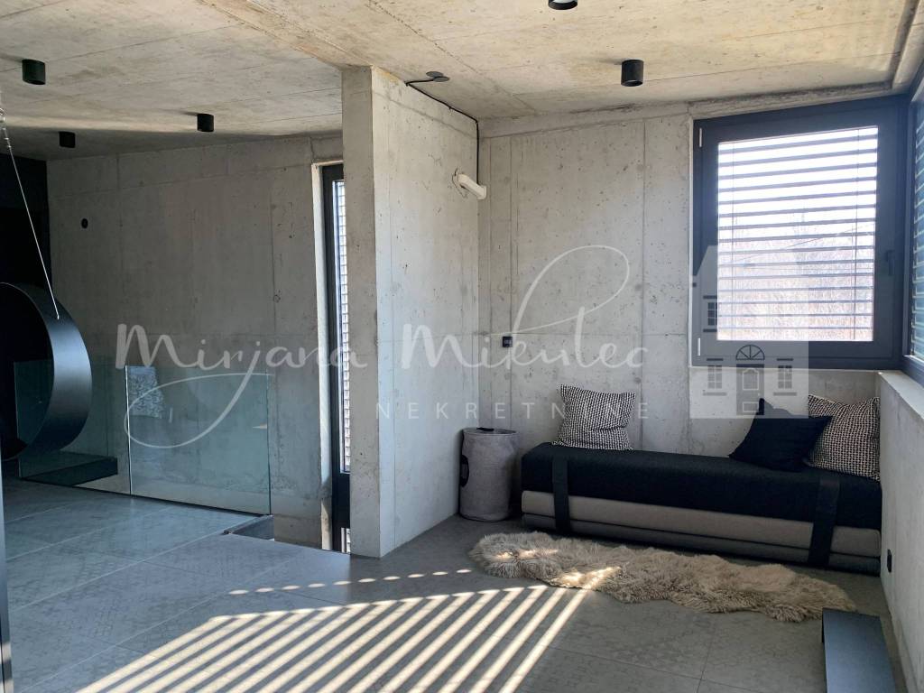 Prodaje se, arhitektonski zanimljiva kuća, katnica, površine 156m2, industrijskog stila uređenja u kojoj se besprijekorno kombinira grubo s profinjenim uz koncept minimalizma i funkcionalnosti.