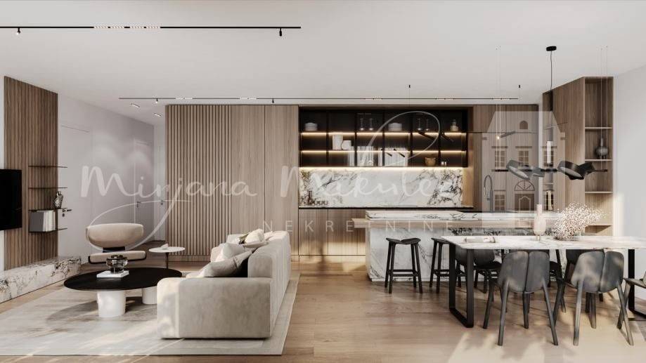 Prilikom gradnje korišteni su materijali vrhunske kvalitete - od keramike 1. klase, sanitarija, protupožarnih i protuprovalnih vratiju, video nadzor, stolarije sve do sustava grijanja i klimatizacije za koje su zadužene dizalice topline te podnog grijanja u svim prostorijama. *PRODAJA, 3s stan površine 75m2 sa terasom 51m2 na 1. katu Stan se sastoji od: - Ulaznog prostora - Open space prostora dnevnog boravka povezanog s kuhinjom i blagovaonicom iz koje se izlazi na prostranu terasu, - Ostave, - 2 spavaće sobe, - Kupaonice i - Odvojenog toaleta. Uz svaki stan obavezna je kupnja garažnog parkirnog mjesta površine 13m30.000 sa PDV-om ili 15m35.000 sa PDv-om Planiran rok završetka gradnje je lipanj / srpanj 2025.