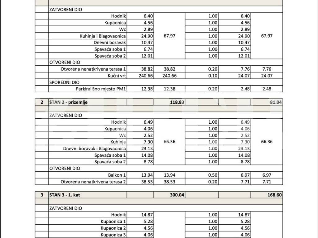 2. Dva trosobna stana 68m sa svojim balkonima/terasama od kojih svaki ima izlaz u svoj ograđeni privatni vrt (moguće spojiti u jedan veliki stan)