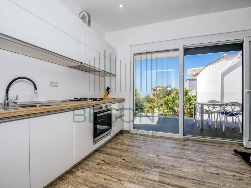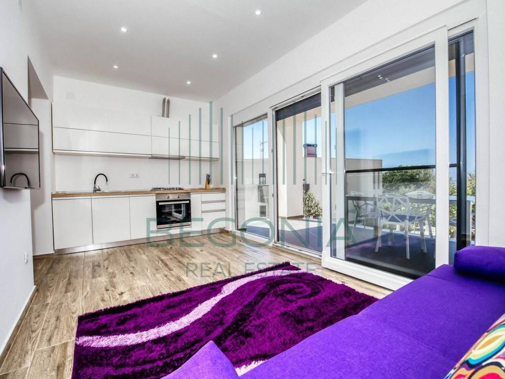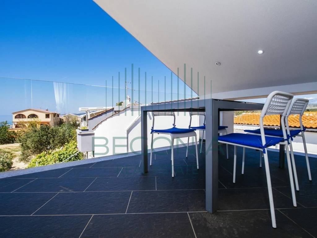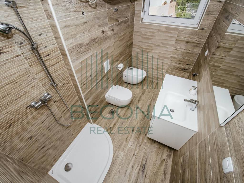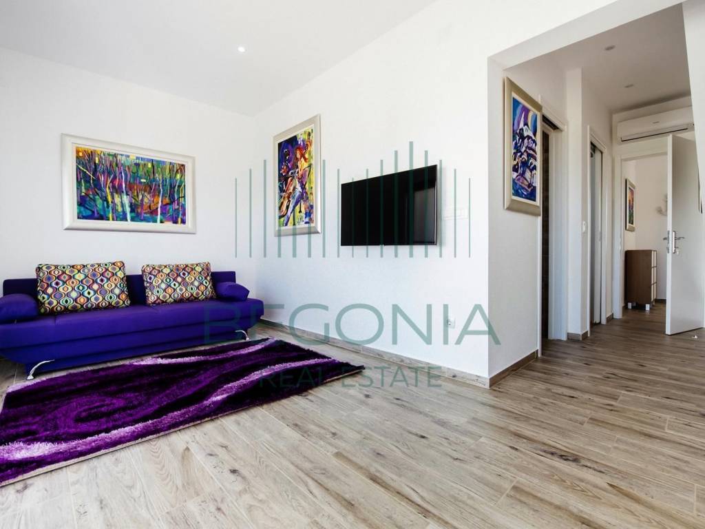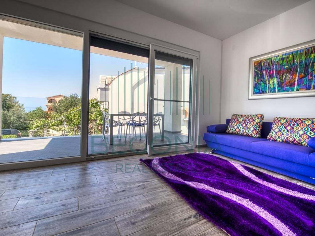 Prodaje se moderno namješten dvoetažni apartman 93 m2, na mirnoj i tihoj lokaciji s pogledom na more. Stan je trenutno pretvoren u dva manja jednosobna apartmana, od kojih svaki ima svoj balkon i pogled na more. Grijanje je izvedeno klima jedinicama.