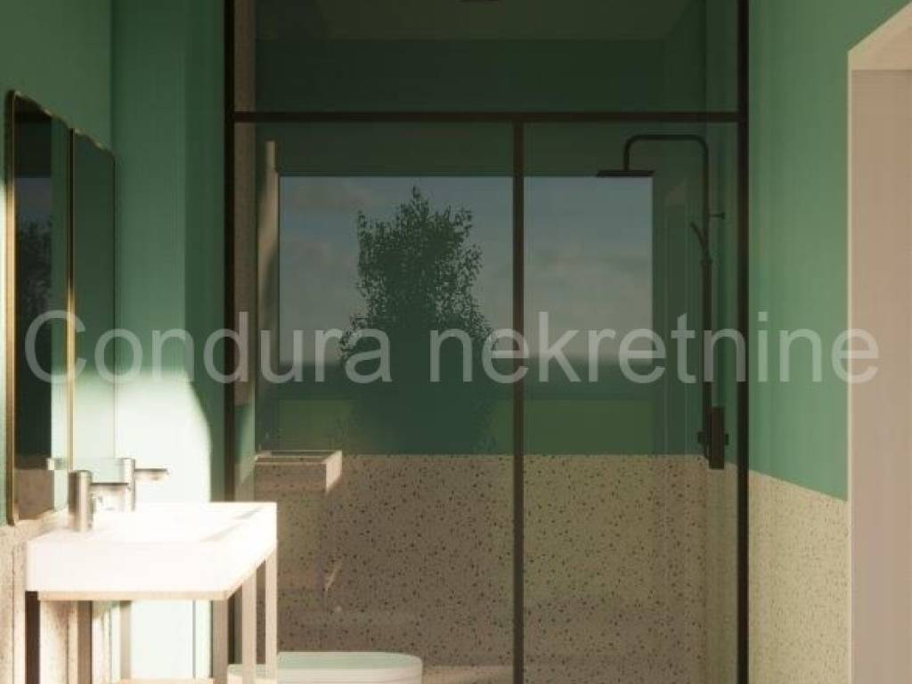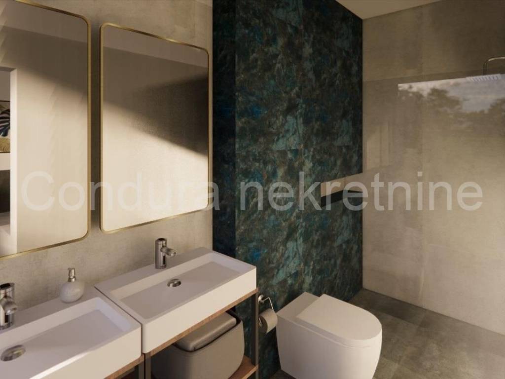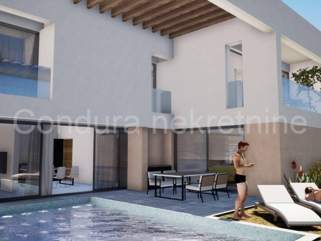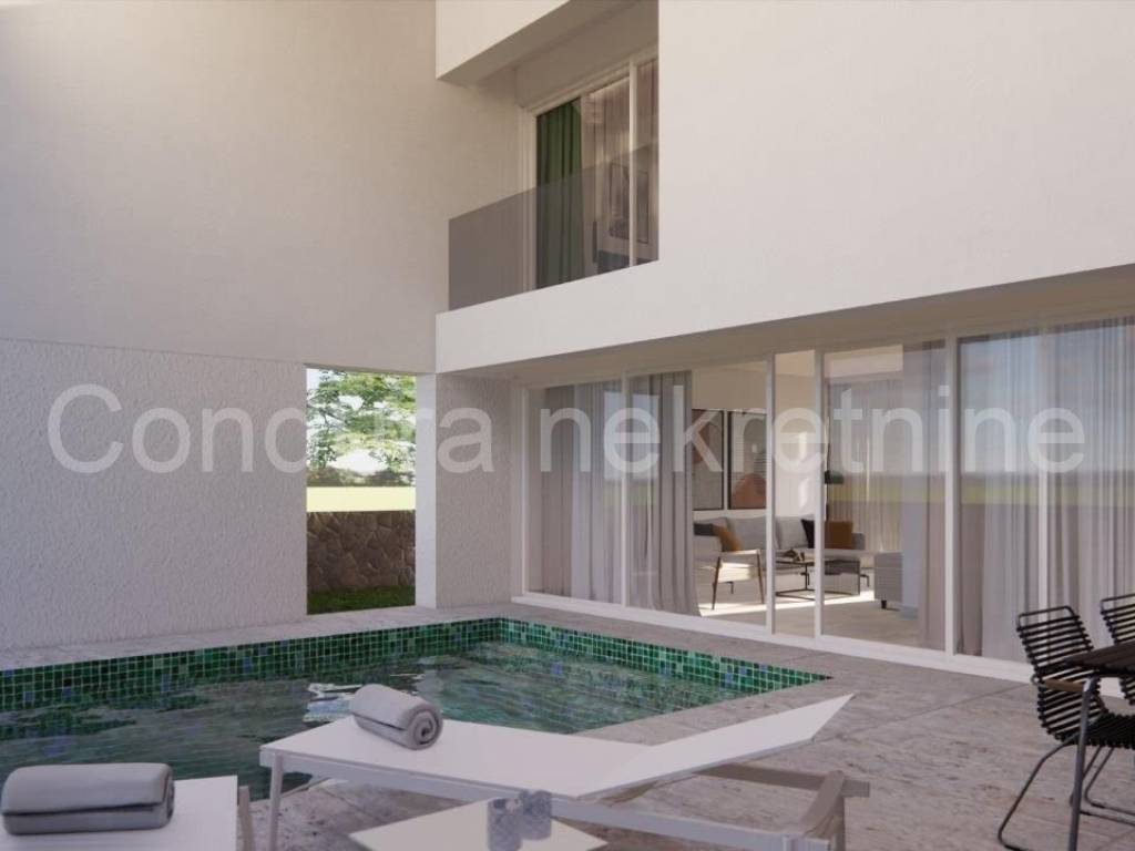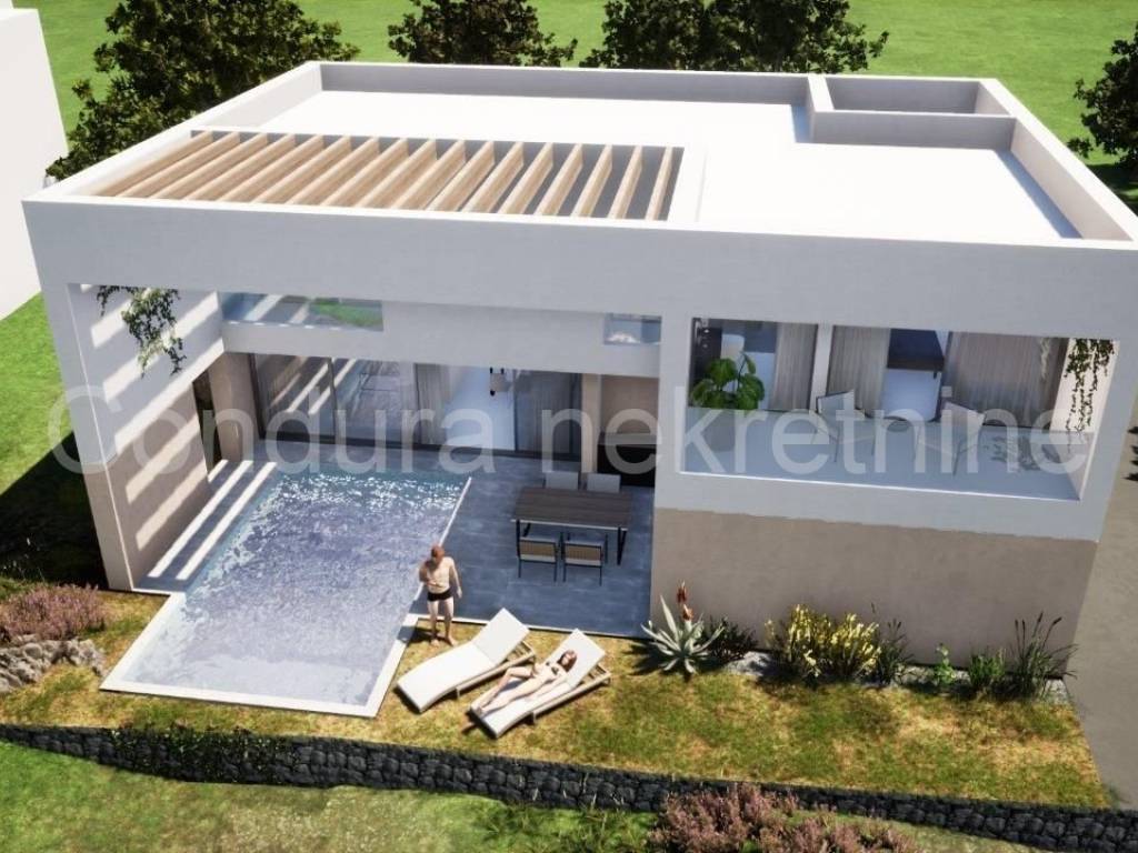 NIN - na prodaju jegrađevinskozemljištepovršine 425 m2sprojektom za izgradnju prekrasne moderne kuće s bazenom na izvrsnoj lokaciji, tek 200 m od mora i plaže. Zemljište je pravilnog oblika, slijedećihdimenzija: cca. 19-21 m x 18 m te ima izravan pristup s javne, asfaltirane prometnice. Prema projektu površina kuće iznosi 224,20 m2te seprostire naprizemlje i kat.Prizemlje se sastoji od dnevnog boravka s kuhinjom i blagovaonicom, toaleta, ulaza - predsoblja, dvije terase i garaže. Stubište vodi nakat gdjese nalaze tri spavaće sobe, svaka sa vlastitom kupaonicom, predsoblje te balkoni. Naokućniciuređenoj travom i biljkama predviđen je bazen dimenzija 6 m x 3,50 m te dubine 1,50 m. Posjeduje pravomoćnu građevinsku dozvolu te je plaćen priključak struje te komunalni i vodni doprinosi. Udaljenostzemljišta od mora i predivne pješčane plaže iznosi tek 200 m. Sva potrebna infrastruktura nalazi se u neposrednoj blizini. Vlasništvo je uredno i bez tereta.