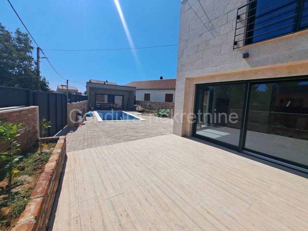 Privlaka - for sale is a beautiful, new stone house with a swimming pool, just 300 m from the sea and the first beach, near the town center.