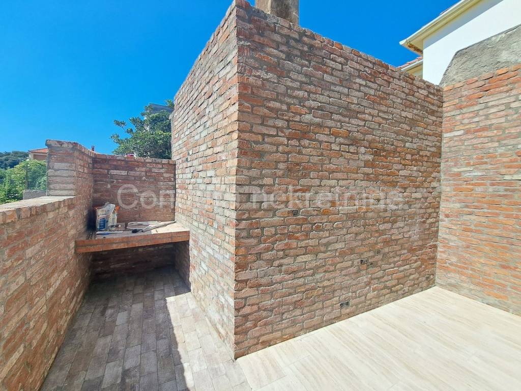 From the kitchen there is an exit to another terrace, also paved with stone, with a large barbecue.