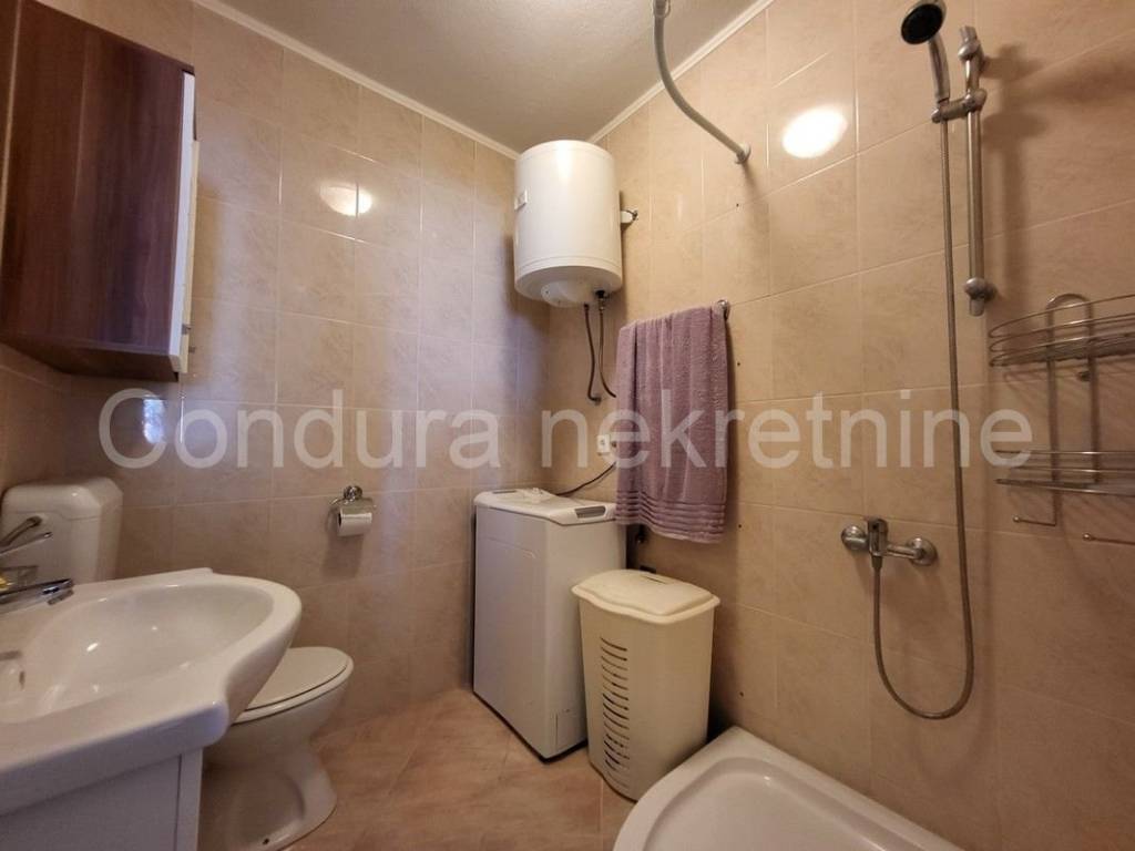 One furnished apartment on the ground floor with a total net area of 73.78 m2 consists of: living room with kitchen and dining room, bathroom, two bedrooms and hallway (40.98 m2), and includes: storage room in the basement (16.60 m2) and a garage in the basement (16.20 m2).