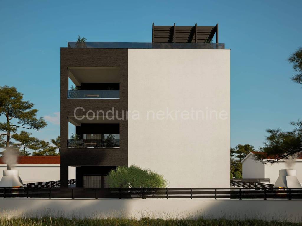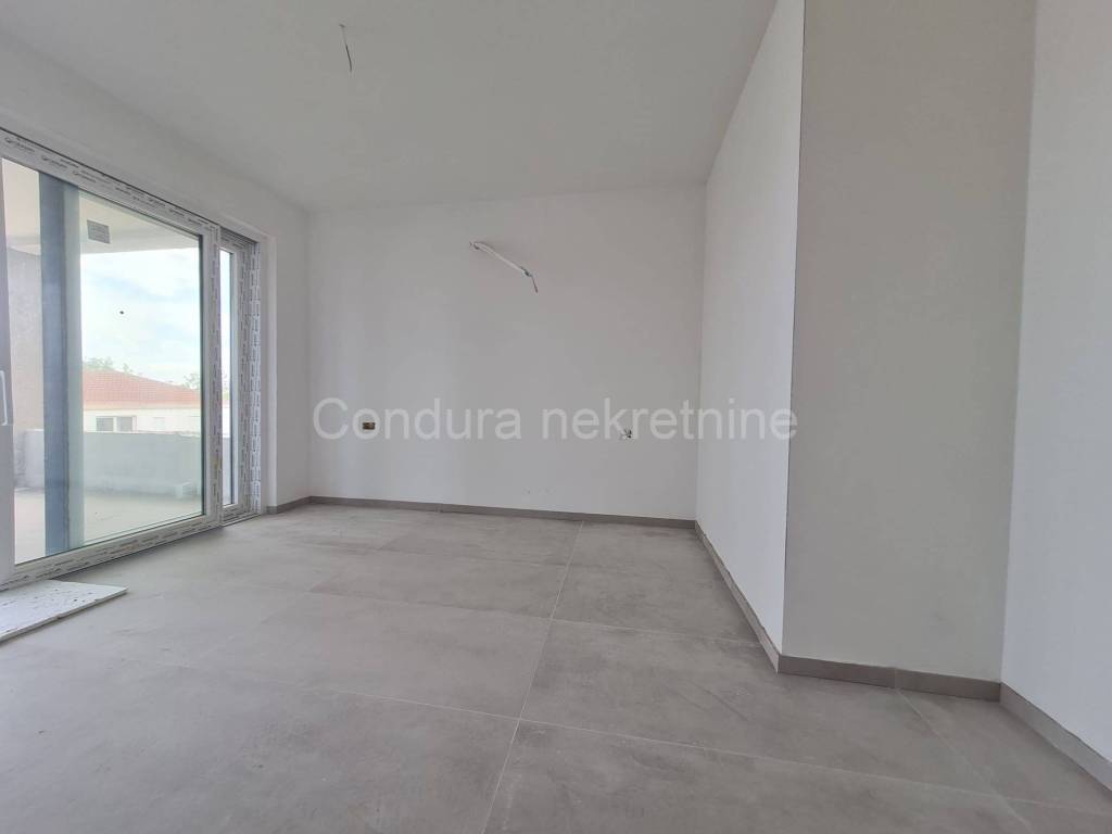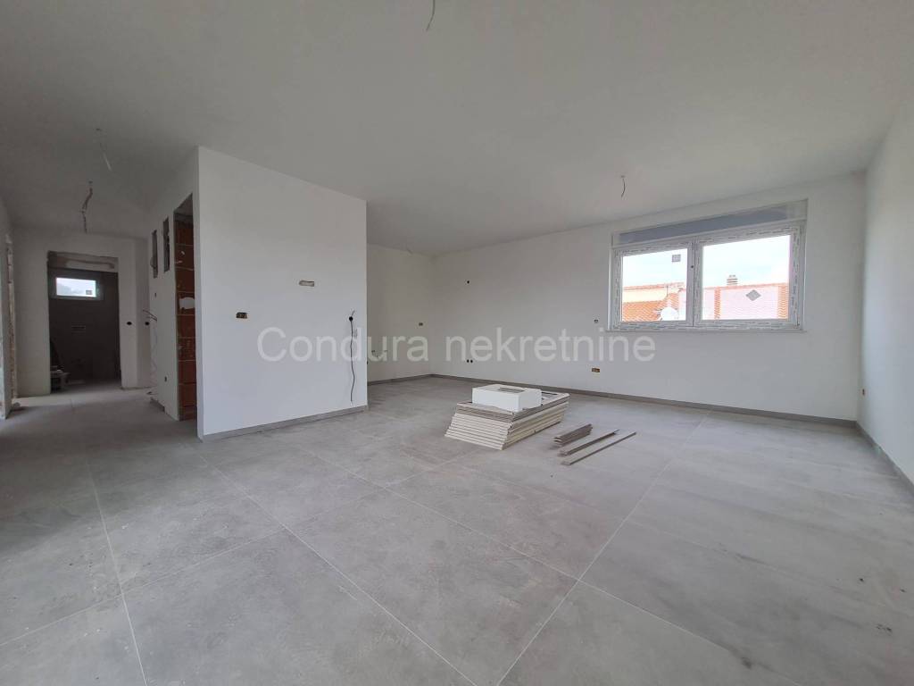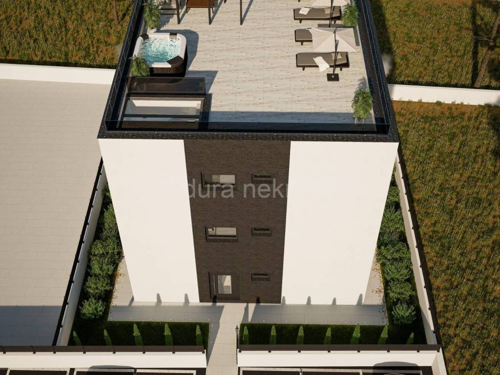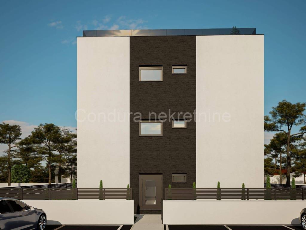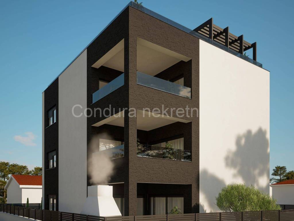 Each apartmentspreads over the entirestorey and has an area of 95 m2. They consist o: hallway, bathroom, toilet, two bedrooms, laundry room, living room with kitchen and a large covered terrace oriented to the south side towards the sea. The apartment on the ground floor and on the first floor will have a part of the garden (approx. 30 m2), while the one on the second floor will have a large roof terrace (approx. 95 m2) with a beautiful open view of the sea, the islands and the surrounding area. Each apartment will also have one parking space (possibility of agreement on additional one).